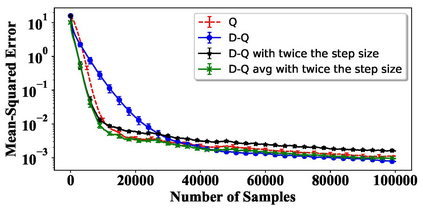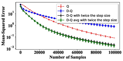 翻译:在本文中,我们对双Q学习和Q学习的无症状的中度误差进行理论比较。我们的结果基于基于Lyapunov方程式的线性随机近似值分析,并适用于表格设置和线性函数近近似值,条件是最佳政策是独特的,算法是趋同的。我们表明,如果双Q学习使用Q学习的学习速率和两个估计者的平均数的两倍,双Q学习的无症状中度误差与Q学习完全相等。我们还用模拟提出这一理论观察的一些实际影响。