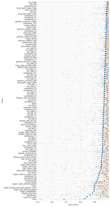 翻译:在这项工作中,我们侧重于(整体体)CT图像中多个解剖结构的自动分解。 许多解剖算法存在用于此任务。 但是, 在多数情况下, 它们都存在3个问题 : 1. 它们难以使用( 代码和数据无法公开或难以使用 )。 2. 它们不一般化( 培训数据集通常被整理成仅包含非常干净的图像, 无法反映临床常规中发现的图像分布 ) 。 算法只能包含一个解剖结构 。 对于更多的结构来说, 需要使用多个解剖结构来增加建立系统所需的努力 。 但是, 在这项工作中, 我们公布一个新的解析和分解工具 。 在 1204 CT 图像中, 我们分解了104个解结构( 27个器官、 59 骨头、 10 肌肉、 8 船体), 覆盖了大部分相关案例的相关课程。 我们显示为创建地面解析器预解析器的工作流程有所改善, 加速了进程10x。 CT 图像是从临床常规中随机取样的, 代表了一个真实的完整的全局数据集 Squrealal- slavealalal 。
