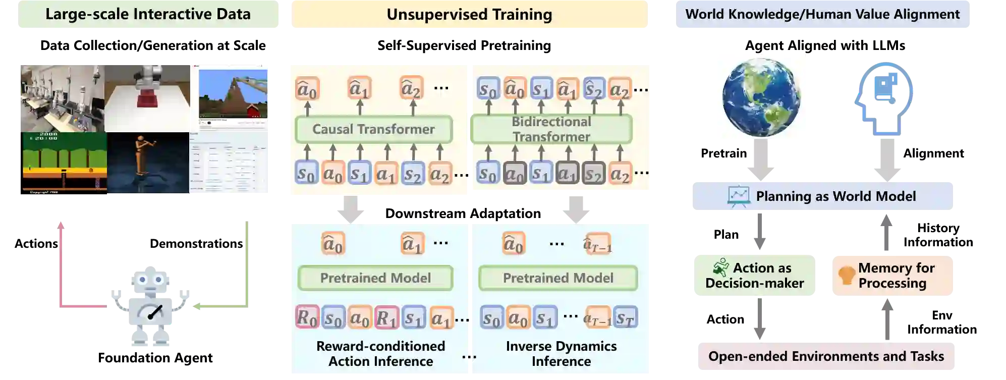Decision making demands intricate interplay between perception, memory, and reasoning to discern optimal policies. Conventional approaches to decision making face challenges related to low sample efficiency and poor generalization. In contrast, foundation models in language and vision have showcased rapid adaptation to diverse new tasks. Therefore, we advocate for the construction of foundation agents as a transformative shift in the learning paradigm of agents. This proposal is underpinned by the formulation of foundation agents with their fundamental characteristics and challenges motivated by the success of large language models (LLMs). Moreover, we specify the roadmap of foundation agents from large interactive data collection or generation, to self-supervised pretraining and adaptation, and knowledge and value alignment with LLMs. Lastly, we pinpoint critical research questions derived from the formulation and delineate trends for foundation agents supported by real-world use cases, addressing both technical and theoretical aspects to propel the field towards a more comprehensive and impactful future.