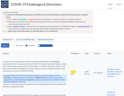 翻译:跟踪科学挑战、进步和新出现的方向是研究的一个基本部分。然而,研究人员面临大量阻碍发现重要知识的论文。在生物医学中,这直接影响到人类生活。为了解决这一问题,我们提出了提取和搜索科学挑战和方向的新任务,以促进快速知识发现。我们制作并发行了全长论文的附加注释的经专家文本集,标注了各种类型的挑战和方向。我们侧重于与COVID-19流行病有关的大量跨学科工作,从生物医学到AI和经济学等领域。我们应用了我们数据培训的模型,以确定整个物理领域的挑战和方向,并建立一个专门的搜索引擎。在与19名研究人员和临床医生利用我们的系统进行实验时,我们优于一个大众科学研究引擎,以协助知识发现。最后,我们展示了我们所培训的关于资源的一般模型,将其推广到更广泛的生物医学领域和AI文件,突出其广泛用途。我们公开提供我们的数据、模型和搜索引擎。https://challenges.aps.allenai.org/org。