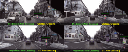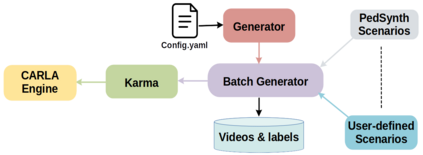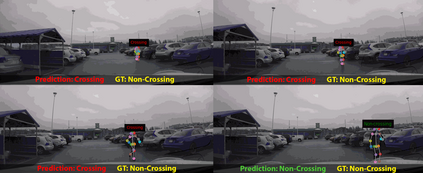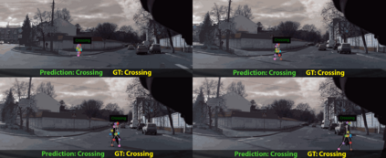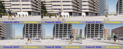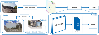 Pedestrian intention prediction is crucial for autonomous driving. In particular, knowing if pedestrians are going to cross in front of the ego-vehicle is core to performing safe and comfortable maneuvers. Creating accurate and fast models that predict such intentions from sequential images is challenging. A factor contributing to this is the lack of datasets with diverse crossing and non-crossing (C/NC) scenarios. We address this scarceness by introducing a framework, named ARCANE, which allows programmatically generating synthetic datasets consisting of C/NC video clip samples. As an example, we use ARCANE to generate a large and diverse dataset named PedSynth. We will show how PedSynth complements widely used real-world datasets such as JAAD and PIE, so enabling more accurate models for C/NC prediction. Considering the onboard deployment of C/NC prediction models, we also propose a deep model named PedGNN, which is fast and has a very low memory footprint. PedGNN is based on a GNN-GRU architecture that takes a sequence of pedestrian skeletons as input to predict crossing intentions.