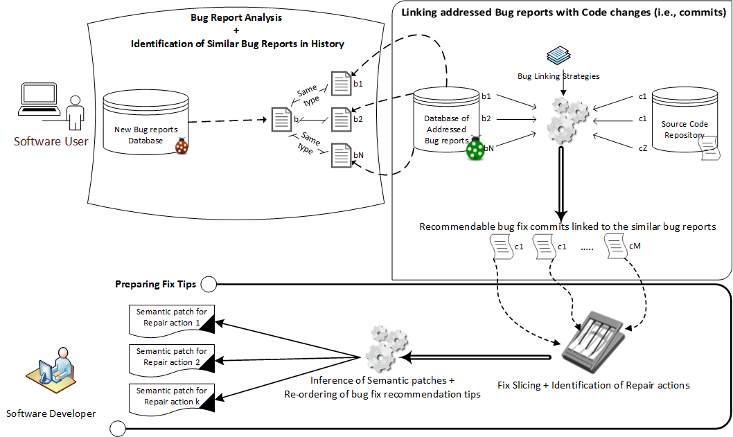 翻译:在软件开发中,修补错误是一项耗时且成本敏感的重要任务。 虽然提出了许多自动检测和修补软件代码的方法, 但这些策略仅限于一组经过彻底研究以定义其属性的已查明的错误。 因此, 它们能够覆盖诸如无限循环等的缺陷。 我们基于这样的假设, 即错误和相关用户错误报告是重复性的, 并基于错误历史及其相关修正, 提出了新的修补建议 。 在我们的处理方法中, 一旦报告错误, 就会使用信息检索技术和机器学习分类, 自动将它与所有先前固定的错误进行比较 。 基于此比较, 我们建议从以往的修补示例中找出的顶级 ~ em k} 修正动作, 可能适合作为软件开发者处理新错误的提示 。