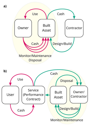 Performance contracts used for servitized business models enable consideration of overall life-cycle costs rather than just production costs. However, practical implementation of performance contracts has been limited due to challenges with performance evaluation, accountability, and financial concepts. As a solution, this paper proposes the connection of the digital building twin with blockchain-based smart contracts to execute performance-based digital payments. First, we conceptualize a technical architecture to connect blockchain to digital building twins. The digital building twin stores and evaluates performance data in real-time while the blockchain ensures transparency and trusted execution of automatic performance evaluation and rewards through smart contracts. Next, we demonstrate the feasibility of both the concept and technical architecture by integrating the Ethereum blockchain with digital building models and sensors via the Siemens building twin platform. The resulting prototype is the first full-stack implementation of a performance-based smart contract in the built environment.