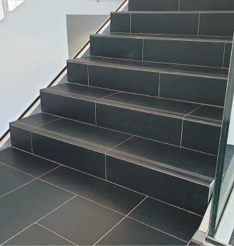 Lower extremity amputees face challenges in natural locomotion, which is partially compensated using powered assistive systems, e.g., micro-processor controlled prosthetic leg. In this paper, a radar-based perception system is proposed to assist prosthetic legs for autonomous obstacle traversing, focusing on multiple-step staircases. The presented perception system is composed of a radar module operating with a multiple-input-multiple-output (MIMO) configuration to localize consecutive stair corners. An inertial measurement unit (IMU) is integrated for coordinates correction due to the angular dis-positioning that occurs because of the knee angular motion. The captured information from both sensors is used for staircase dimensioning (depth and height). A shallow neural network (NN) is proposed to model the error due to the hardware limitations and enhance the dimension estimation accuracy (1 cm). The algorithm is implemented on a microcontroller subsystem of the radar kit to qualify the perception system for embedded integration in powered prosthetic legs.