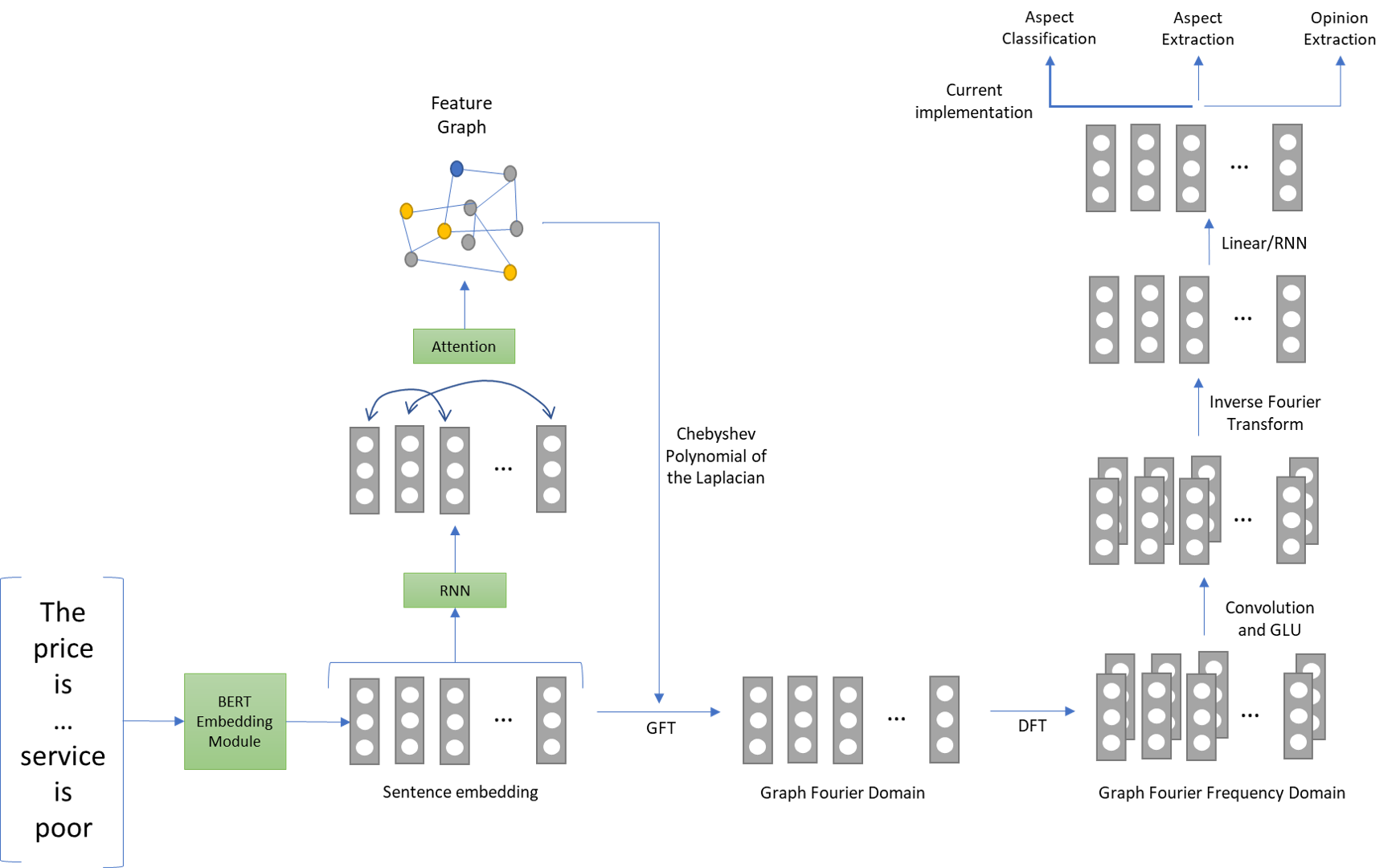 翻译:Asprospect Basic Sentition 分析的目标是捕捉与不同方面有关的审查者情绪。然而,审查判决的复杂性、双重否定的存在以及不同领域对词汇的具体使用使得很难准确预测情绪和整体上具有挑战性的自然语言理解任务。虽然经常的神经网络、关注机制以及最近,基于图形的注意模式很普遍,但本文中我们提议图示 Fourier 变换基于网络,具有光谱域所创建的特征。虽然这种方法在预报领域取得了相当大的成功,但对于任何自然语言处理任务而言,都没有早一些加以探讨。该方法依赖于从原始数据中创建和学习一个基本图表,从而利用相邻矩阵转换到图示 Fourier域。随后,Fourier变换用于转换到创建新特征的频率(光谱)域。这些变换已证明非常有效,因为我们发现我们的模型在SemEval-2014数据集(即“Laptop”和“Restaurant”)领域都取得了最佳结果。我们提议的模型还在最近提出的另外两个数据域中找到了竞争性域。