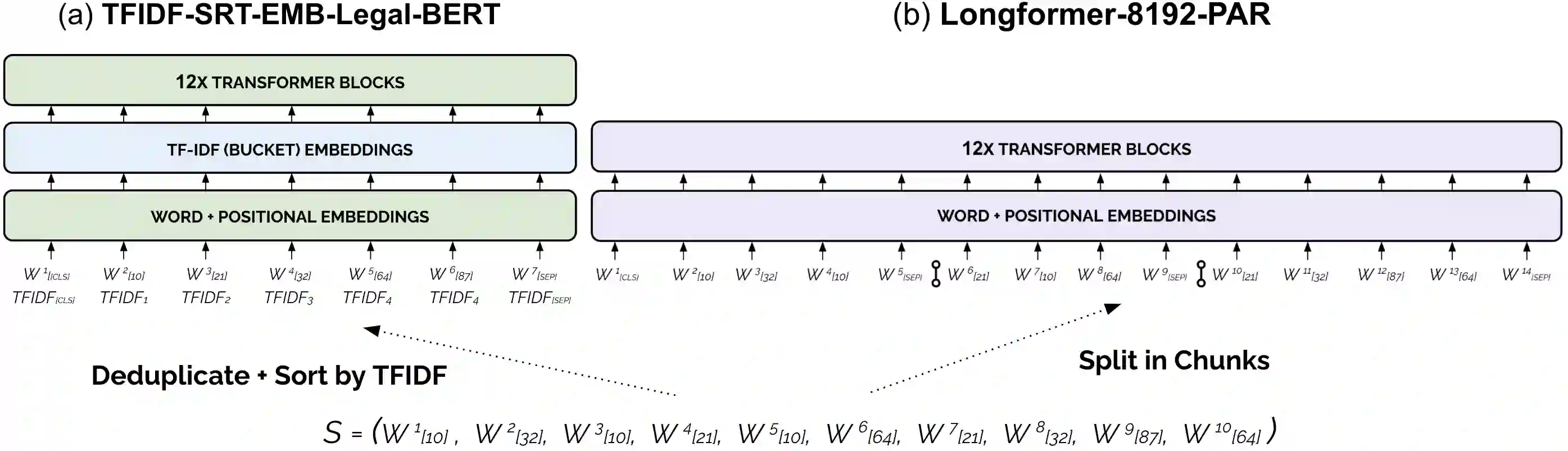 翻译:培训前的变压器目前控制着大多数NLP任务,但是对最大输入长度(BERT中的512个子字)施加限制,这些限制在法律领域限制太强。即使是Longfore和BigBird等少见的注意模式,将最大输入长度提高到4 096个小字,在LexGLUE的六套数据集中,有六套数据集中的三套中严重删除文本。具有TF-IDF特点的简单线性分类器可以处理任何长度的文本,需要远小于培训和部署的资源,但通常由预先培训的变压器完成。我们探索了两种方向来应对长期的法律文本。我们探索了两种方向:(一)修改从Leganexew和BIBird开始的长期热量模型,以便处理更长的文本(最多为8 192个子字),以及(二)修改LegaBERTF,以便使用TF-IDF的表述方式。第一种是最佳的绩效,超过LEBERT的等级版本,这是LEGLEPERT的原版,这是LGLLPERUE的工艺状态。第二种方法导致计算效率更高的模式,在计算中以较低的模式中以较低性模式,但是仍然以降低了整个文件格式的立式格式。