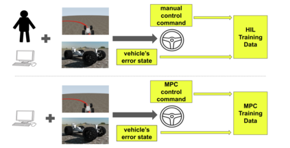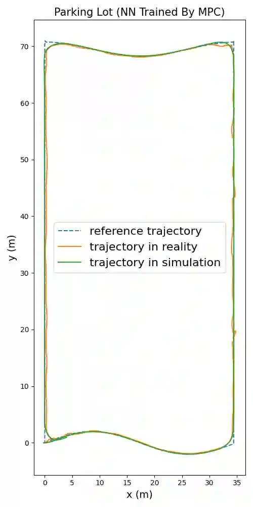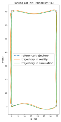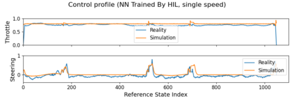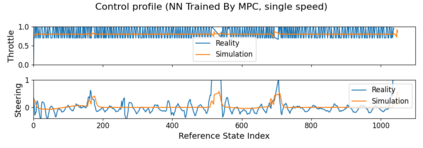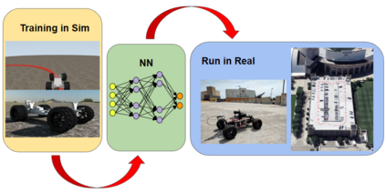 We report on a study that employs an in-house developed simulation infrastructure to accomplish zero shot policy transferability for a control policy associated with a scale autonomous vehicle. We focus on implementing policies that require no real world data to be trained (Zero-Shot Transfer), and are developed in-house as opposed to being validated by previous works. We do this by implementing a Neural Network (NN) controller that is trained only on a family of circular reference trajectories. The sensors used are RTK-GPS and IMU, the latter for providing heading. The NN controller is trained using either a human driver (via human in the loop simulation), or a Model Predictive Control (MPC) strategy. We demonstrate these two approaches in conjunction with two operation scenarios: the vehicle follows a waypoint-defined trajectory at constant speed; and the vehicle follows a speed profile that changes along the vehicle's waypoint-defined trajectory. The primary contribution of this work is the demonstration of Zero-Shot Transfer in conjunction with a novel feed-forward NN controller trained using a general purpose, in-house developed simulation platform.