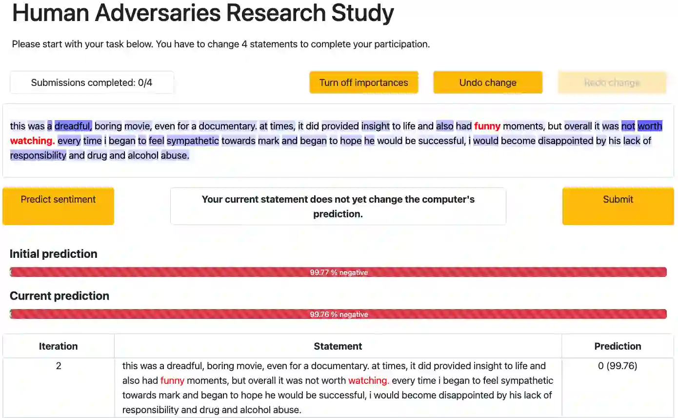 翻译:研究显示,自然语言处理模式通常被认为容易受到对抗性攻击;但最近的工作提请注意根据某些标准(例如,保留语义和语法学)验证这些对抗性投入的问题。 坚持这些标准的制约可能会使攻击不成功,从而提出有效攻击是否实际可行的问题。 在这项工作中,我们从人类语言能力的角度来调查这一问题。我们报告了众包研究,在这种研究中,我们要求人类在输入文本中用迭代修改词,同时收到即时的模型反馈,目的是造成情绪分类模型错误分类。我们的调查结果表明,人类能够利用语义保留词替换生成大量对抗性例子。我们分析了人类产生的对抗性例子如何与最近提议的TextFooler、遗传学、BAE和SemePSO攻击算法相比较,其范围是自然特性、情绪保存、重感光度和替换率。我们的研究结果表明,人类产生的对抗性例子并不比最佳的算法更有能力产生大量的对抗性计算方法,但通过如此高效的计算来保存感知力。