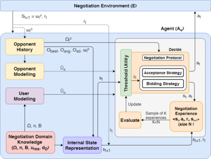翻译:我们提出了一个新的双边谈判模式,让自我感兴趣的代理商在用户偏好不确定的情况下学习如何就多种问题进行谈判。该模式依赖于代表该代理商在谈判期间应当使用的战术的可解释战略模板,并学习模板参数,以最大限度地扩大在多次谈判中获得的平均效用,从而产生最佳的投标接受率和生成率。我们的模式还利用深入强化学习来评价门槛效用价值,以评价那些需要这些价值的战术,从而为每个环境州带来最佳的公用事业。为了处理用户偏好不确定性,该模式依赖于随机搜索,以找到最符合特定部分优惠特征的用户模式。在谈判期间,采用了多目标优化和多标准决策方法,从而产生最佳结果,从而增加成功(双赢)谈判的数量。严格的实验评估表明,使用我们的模型的代理商在个人和社会福利公用事业方面都超过了第10次自动谈判代理商竞争(ANAC'19)的获奖者。