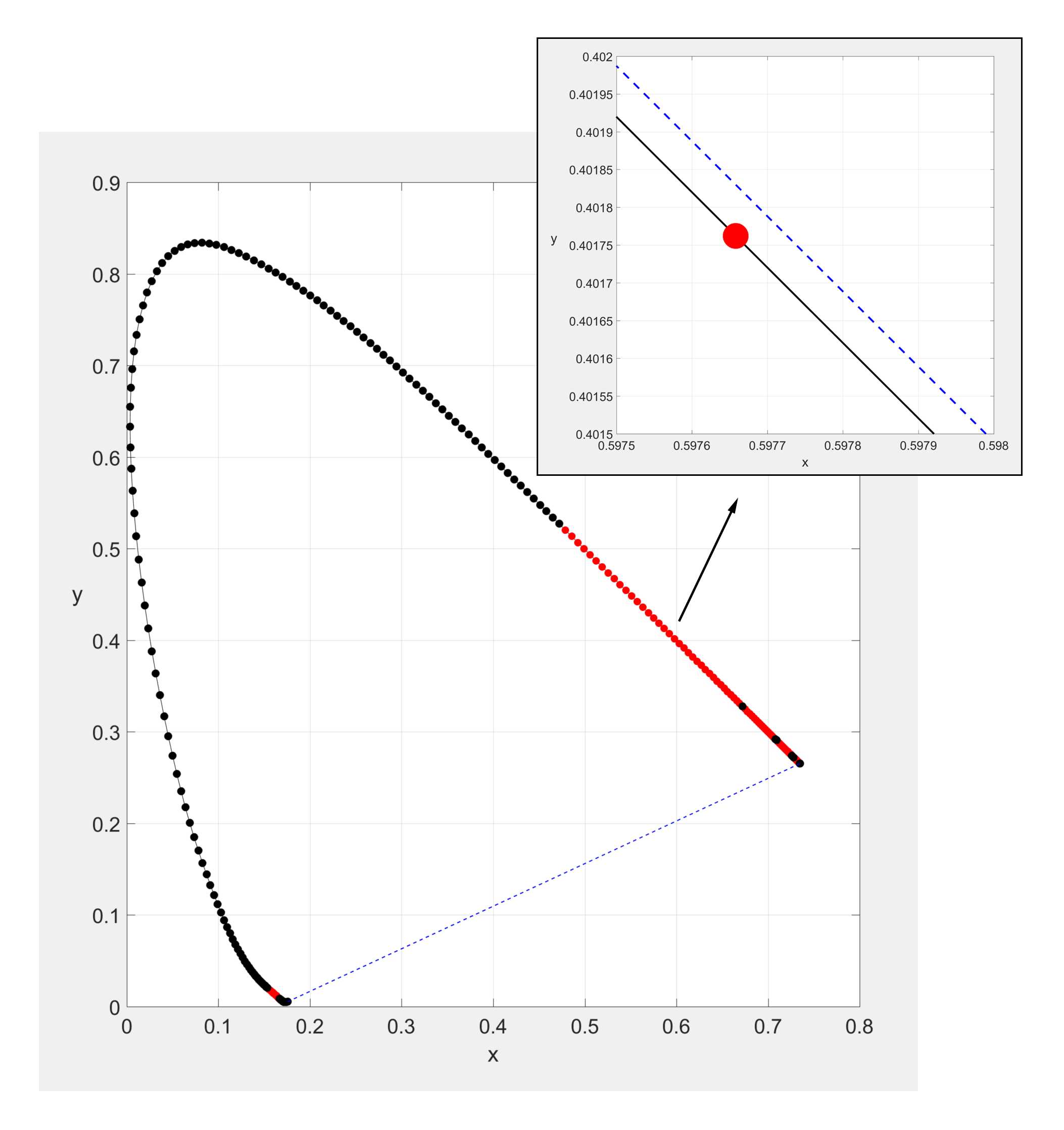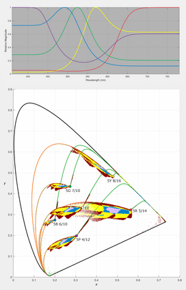 翻译:与 CIE 1931 颜色匹配函数相关的色度图显示为略微非混凝土。 虽然对实际色度计算没有影响, 但非混凝土确实对与物体表面表面的物体色实相关的某种最佳对象色反射分布的形状有重大影响。 许多最佳颜色表象不是通常的双向转换形状, 而是显示较高的过渡值。 正在开发线性编程配方, 用于定位这些高过渡最佳对象颜色位于物体颜色固体表面的位置。 高过渡区域计似乎有一个点对称互补结构。 最终的同行审查版本( 将出现) 包含更多关于颜色匹配功能的凝固化的材料, 以及对从锥形基质变化的现代“ 生理相关” 集聚变的附加分析 。