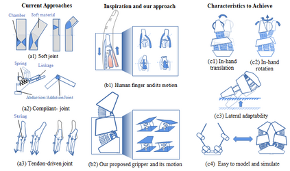 翻译:软伸缩器因其基于合规的交互式安全性和灵敏度而日益受到越来越多的关注。 混合拉动器(软动动画器因僵硬限制而增强)是软握手设计的新趋势。 由软动动画器驱动的正确的结构构件可以实现极佳的掌握适应性和有效载荷,同时也容易与传统运动动力学进行模拟和控制。 但是,现有的工程主要侧重于在简单的平板工作空间中实现高级有效载荷和感知,导致与常规握手相比,软软握手要少得多。 在这项工作中,我们从人类的Metcarpophalangeal(MCP)联合中获得了灵感,并提出了一个新的具有8个独立肌肉的新的混合握握手器设计。 事实证明,在混合拉动器中,包括手动操纵、侧被动的合规,以及新的控制模式。 原型牵动器在我们的自制型双臂机械式双臂机械平台上制作并测试了软握手握手势。 与较轻的软操作器操作器联合, 握手握手握手握手法在25次的螺旋操纵中,两部操纵中, 伸动的操作可以使双压的操作操作, 制式操纵在高压操作中实现。