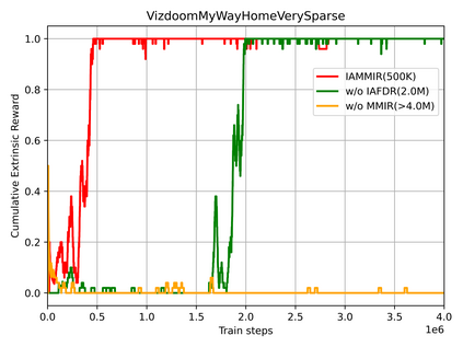 翻译:现实生活中的许多场景可以被抽象到稀少的奖励视觉场景, 在那里, 代理人很难在只接受图像和微弱的奖励的条件下完成这项任务。 我们提议将这个问题分解成两个子问题: 视觉表现和微弱的奖励。 为了解决这些问题, 将自我监督的代表性学习与内在动机相结合的新框架 IAMMIIR 提出来。 对于视觉表现, 一种由图像放大前向动态和奖励相结合驱动的表示。 对于微弱奖励, 设计一种新的内在奖赏类型, 即运动记忆内存内分泌( MMMIR) 。 它利用当前模型( 在线网络) 和历史模型( 目标网络) 的产出差异来展示该代理人对状态的熟悉程度。 我们的方法是在Vizdoomoom 中以微薄的奖励来评价视觉导航任务。 实验表明, 我们的方法在样本效率方面达到了艺术表现的状态, 要比现有方法至少快2倍于100%的成功率。