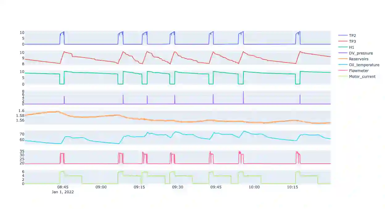 翻译:本文描述了MetroPT数据集,这是葡萄牙波尔图城市公共交通服务城市地铁运输服务的预测维护项目的成果。该数据是在2020至2022年间收集的,旨在开发用于在线异常现象探测和故障预测的机器学习方法。通过捕捉若干模拟传感器信号(压力、温度、当前消耗量)、数字信号(控制信号、离散信号)和全球定位系统信息(纬度、经度和速度),我们提供了一个可用于新机器学习方法的易于使用和开发的框架。我们认为该数据集包含一些有趣的特征,可以成为预测维护模型的良好基准。