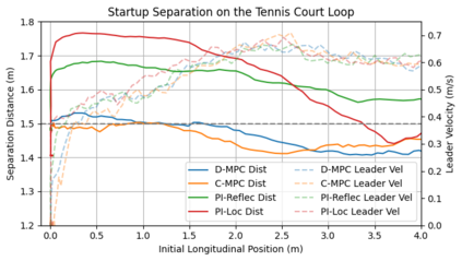 For autonomous cargo transportation, teams of mobile robots can provide more operational flexibility than a single large robot. In these scenarios, precision in both inter-vehicle distance and path tracking is key. With this motivation, we develop a distributed model-predictive controller (MPC) for multi-vehicle cargo operations that builds on the precise path-tracking of lidar teach and repeat. To carry cargo, a following vehicle must maintain a Euclidean distance offset from a lead vehicle regardless of the path curvature. Our approach uses a shared map to localize the robots relative to each other without GNSS or direct observations. We compare our approach to a centralized MPC and a baseline approach that directly measures the inter-vehicle distance. The distributed MPC shows equivalent nominal performance to the more complex centralized MPC. Using a direct measurement of the relative distance between the leader and follower shows improved tracking performance in close-range scenarios but struggles with long-range offsets. The operational flexibility provided by distributing the computation makes it well suited for real deployments. We evaluate four types of convoyed path trackers with over 10 km of driving in a coupled convoy. With convoys of two and three rovers, the proposed distributed MPC method works in real-time to allow map-based convoying to maintain maximum spacing within 20 cm of the target in various conditions.