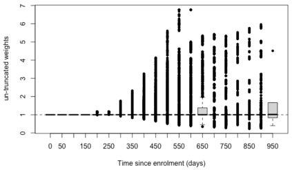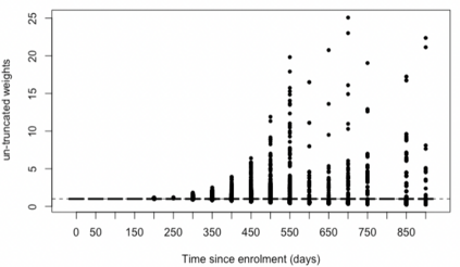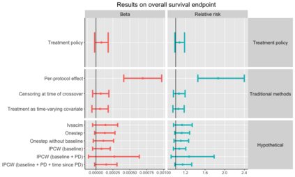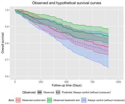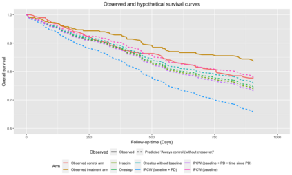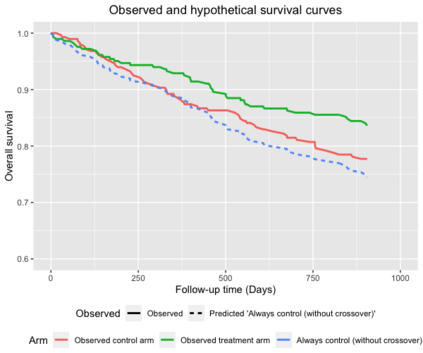 翻译:在随机临床试验中选择估计值和估计值时,必须谨慎行事,因为间歇性事件,例如,由于病人在病变后转诊治疗而导致的病人,往往是极端的; 统计分析可能很容易地诱使一个人进行大规模的隐含外推,而这种外推往往不为人注意。 我们将利用真正的肿瘤学案例研究来说明隐含的外推问题,同时使用一种正确的检查时间到时间的假设,使病人能够从控制到疾病不断演变后的实验治疗,这是合乎道德的。我们为此开发一个生存风险比估计器,对比每一次存活概率,如果所有病人在当时都以生存概率来进行实验治疗,如果所有病人都能控制治疗到时间,则使用随机化作为工具变量,避免依赖任何未经测量的断裂假设。这个加倍有力的估计器可以处理时间变化治疗开关和正确检测的存活时间。如果对所有病人进行观察,那么对测算仪背后的原理进行推算,并且通过重新测试来证明方法。</s>