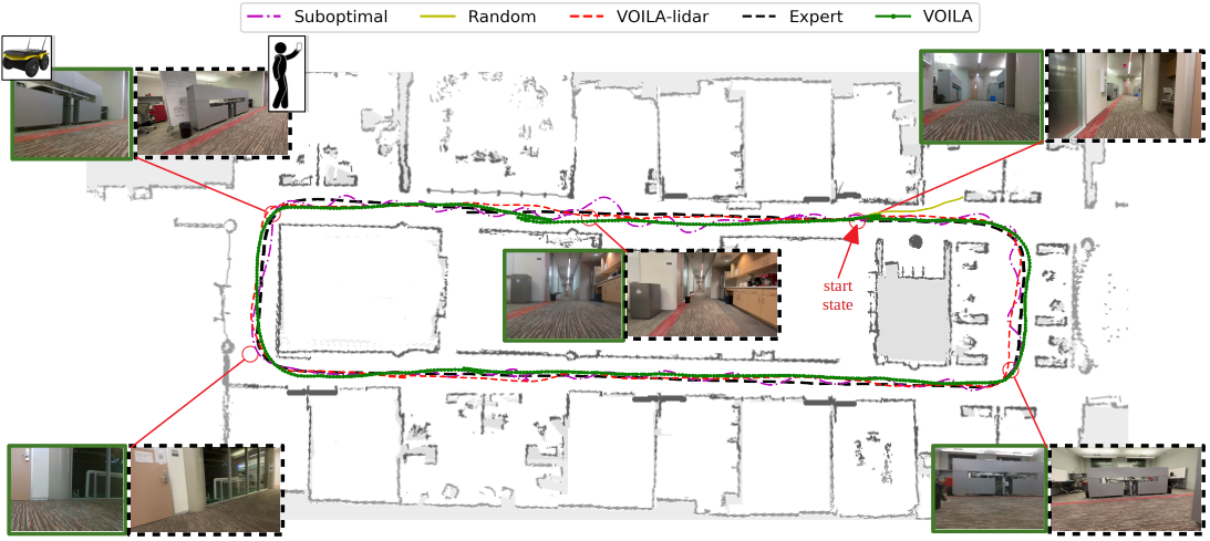 翻译:以视觉为基础的自主移动机器人导航的模仿学习最近引起了研究界的极大关注,但现有方法通常需要使用部署平台收集的州行动演示。然而,如果人们不能轻易地安装平台来记录这些演示信号,或者更糟的是示威者根本无法进入平台呢?在这样的情况下,模拟学习以视觉为基础的自主导航是否甚至有可能?在这项工作中,我们假设答案是肯定的,观察(IfO)文献的仿照(IfO)的最新想法可以让机器人学会只使用由示范者收集的自我中心视频来导航,即使存在观点不匹配的情况。为此,我们引入一种新的算法,即视觉观察只进行自动导航的模仿学习(VOILA),它能够成功地从从从一个物理上不同的代理人收集的单一视频演示中学习导航政策。我们用光动的AirSimSim模拟器对VILA进行了评价,并表明VOIA不仅能够成功地模仿专家,而且它也能学习能够向新环境普及的自我中心导航政策。我们进一步展示了在使用一个真实的机器人环境中的视频环境。