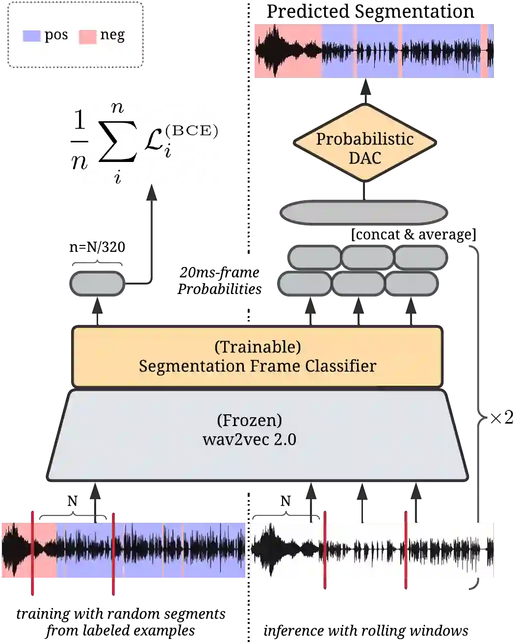 翻译:语音翻译模型无法直接处理长音频,如TED演讲,这些模式必须分成较短的部分。 语音翻译数据集提供音频的人工分解,在现实世界情景中无法提供,而现有的分解方法通常会大大降低推论时间的翻译质量。 为了缩小培训的手工分解与自动分解之间的差距, 我们提议了监督混合音频分解(SHAS), 这种方法可以有效地从任何手动的分解语音中学习最佳分解。 首先, 我们训练了一名分类员, 以便使用预先训练的 wav2vec 2. 0 的语音表达方式来识别包含的分解框架。 然后, 最佳分解点会通过概率分解算法找到最佳分解点, 在所有部分低于预定长度之前, 在最小的概率范围内, 逐步分解。 关于 MuST- C 和 mTEDx 的实验显示, 我们方法制作的各部分的翻译会接近5种语言组合的手工分解质量。 也就是说, SHAS保留了预训练的95-98%的语音分解方法, 将我们现有87- LEU 的高级分解方法比起来, 高级方法将达到最高分解法。