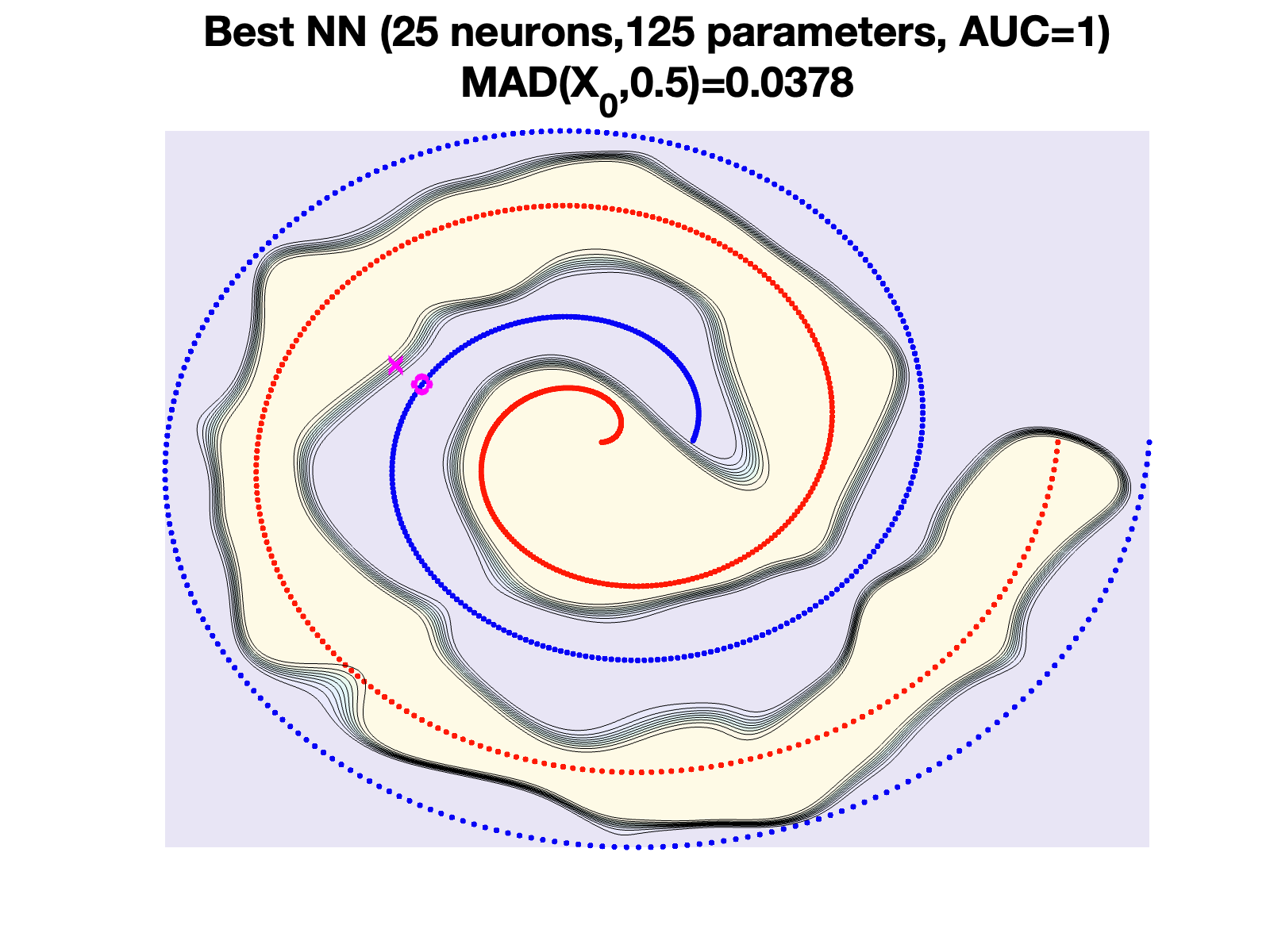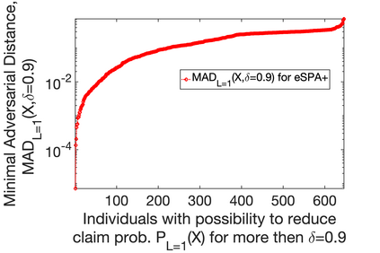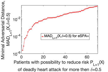 Simply-verifiable mathematical conditions for existence, uniqueness and explicit analytical computation of minimal adversarial paths (MAP) and minimal adversarial distances (MAD) for (locally) uniquely-invertible classifiers, for generalized linear models (GLM), and for entropic AI (EAI) are formulated and proven. Practical computation of MAP and MAD, their comparison and interpretations for various classes of AI tools (for neuronal networks, boosted random forests, GLM and EAI) are demonstrated on the common synthetic benchmarks: on a double Swiss roll spiral and its extensions, as well as on the two biomedical data problems (for the health insurance claim predictions, and for the heart attack lethality classification). On biomedical applications it is demonstrated how MAP provides unique minimal patient-specific risk-mitigating interventions in the predefined subsets of accessible control variables.
