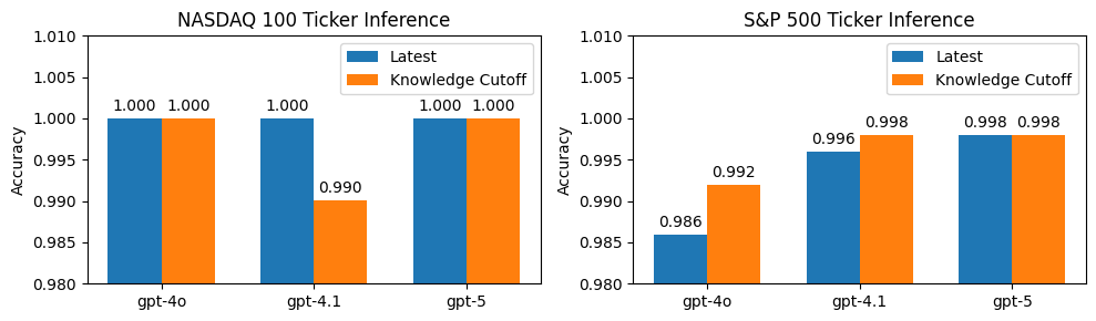 We present FinAI Data Assistant, a practical approach for natural-language querying over financial databases that combines large language models (LLMs) with the OpenAI Function Calling API. Rather than synthesizing complete SQL via text-to-SQL, our system routes user requests to a small library of vetted, parameterized queries, trading generative flexibility for reliability, low latency, and cost efficiency. We empirically study three questions: (RQ1) whether LLMs alone can reliably recall or extrapolate time-dependent financial data without external retrieval; (RQ2) how well LLMs map company names to stock ticker symbols; and (RQ3) whether function calling outperforms text-to-SQL for end-to-end database query processing. Across controlled experiments on prices and fundamentals, LLM-only predictions exhibit non-negligible error and show look-ahead bias primarily for stock prices relative to model knowledge cutoffs. Ticker-mapping accuracy is near-perfect for NASDAQ-100 constituents and high for S\&P~500 firms. Finally, FinAI Data Assistant achieves lower latency and cost and higher reliability than a text-to-SQL baseline on our task suite. We discuss design trade-offs, limitations, and avenues for deployment.
