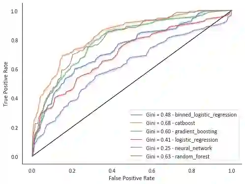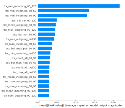 翻译:该项目的目的是开发和测试先进的分析方法,以提高信用风险模型的预测准确性,同时保留模型解释性,特别是,该项目侧重于将可解释的机器学习模型应用于银行相关数据库,输入数据来自开放数据,在已经验证的全部模型中,CatBoost显示最高性能,在调整超参数后,算法实施产生0.68的GINI。SHAP软件包用于为模型预测提供全球和地方解释,以制定理解决策者算法的人类综合方法。20个最重要的特征是使用Shapley值选择的,以展示一个完整的、可理解的模型,显示一个人的属性如何与其模型预测相关。