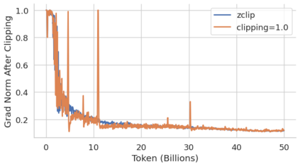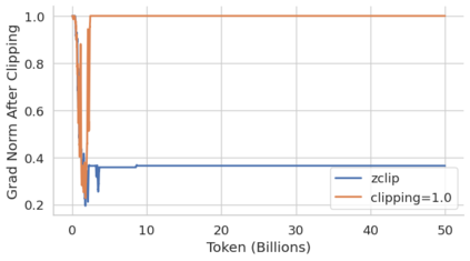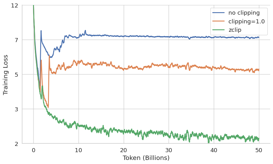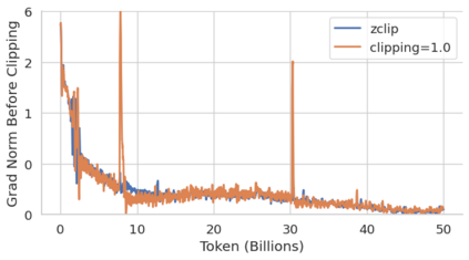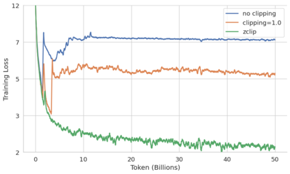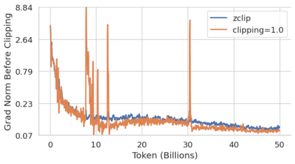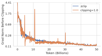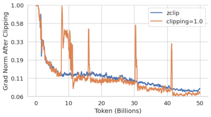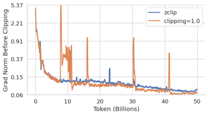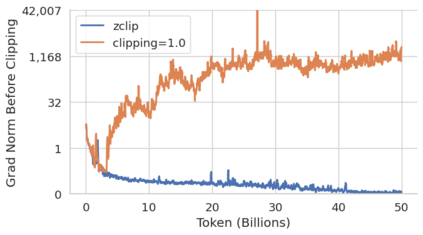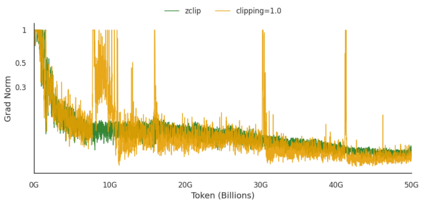 Training large language models (LLMs) presents numerous challenges, including gradient instability and loss spikes. These phenomena can lead to catastrophic divergence, requiring costly checkpoint restoration and data batch skipping. Traditional gradient clipping techniques, such as constant or norm-based methods, fail to address these issues effectively due to their reliance on fixed thresholds or heuristics, leading to inefficient learning and requiring frequent manual intervention. In this work, we propose ZClip, an adaptive gradient clipping algorithm that dynamically adjusts the clipping threshold based on statistical properties of gradient norms over time. Unlike prior reactive strategies, ZClip proactively adapts to training dynamics without making any prior assumptions on the scale and the temporal evolution of gradient norms. At its core, it leverages z-score-based anomaly detection to identify and mitigate large gradient spikes, preventing malignant loss spikes while not interfering with convergence otherwise. Our code is available at: https://github.com/bluorion-com/ZClip.