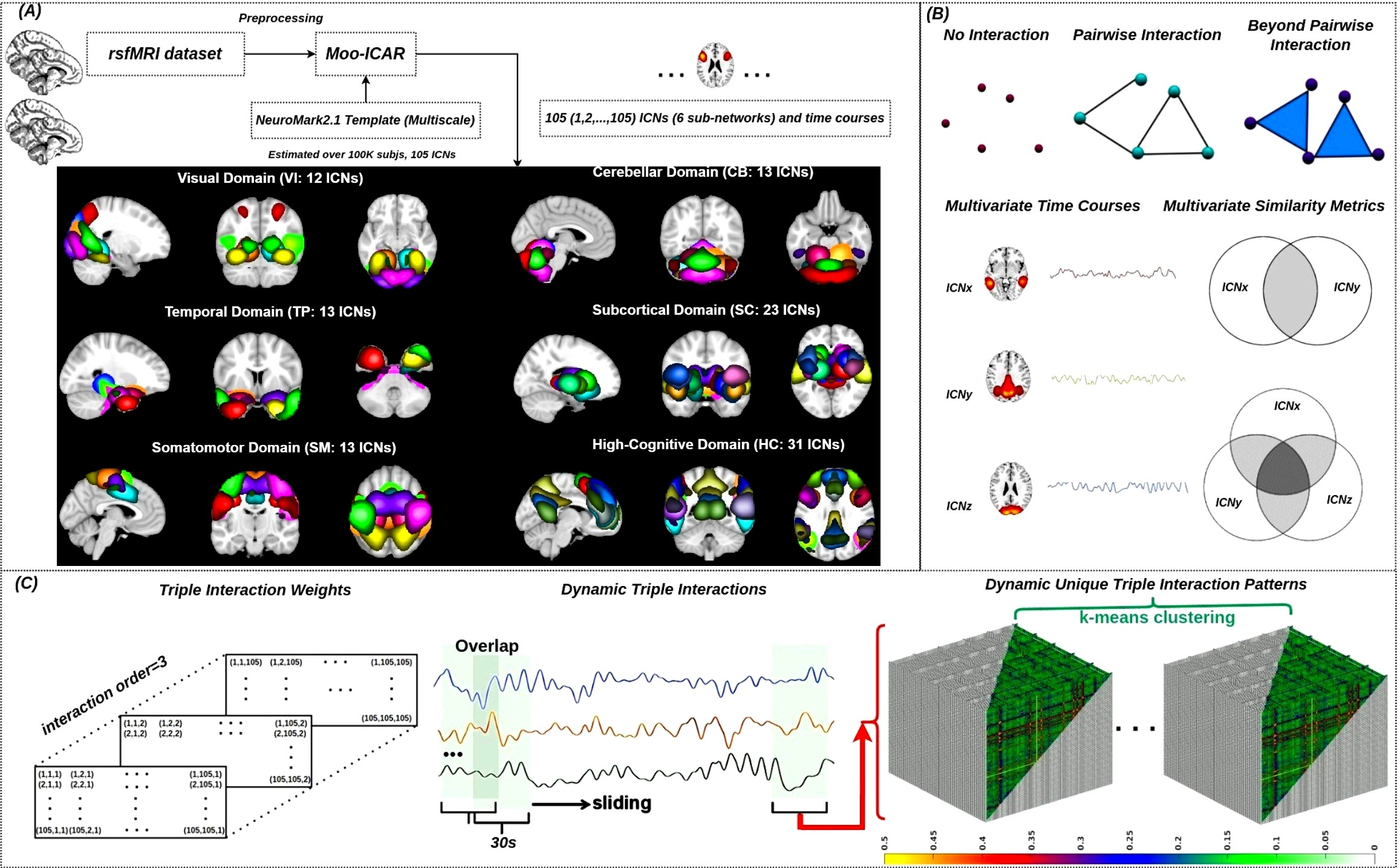 The human brain dynamically integrated and configured information to adapt to the environment. To capture these changes over time, dynamic second-order functional connectivity was typically used to capture transient brain patterns. However, dynamic second-order functional connectivity typically ignored interactions beyond pairwise relationships. To address this limitation, we utilized dynamic triple interactions to investigate multiscale network interactions in the brain. In this study, we evaluated a resting-state fMRI dataset that included individuals with psychotic disorders (PD). We first estimated dynamic triple interactions using resting-state fMRI. After clustering, we estimated cohort-specific and cohort-common states for controls (CN), schizophrenia (SZ), and schizoaffective disorder (SAD). From the cohort-specific states, we observed significant triple interactions, particularly among visual, subcortical, and somatomotor networks, as well as temporal and higher cognitive networks in SZ. In SAD, key interactions involved temporal networks in the initial state and somatomotor networks in subsequent states. From the cohort-common states, we observed that high-cognitive networks were primarily involved in SZ and SAD compared to CN. Furthermore, the most significant differences between SZ and SAD also existed in high-cognitive networks. In summary, we studied PD using dynamic triple interaction, the first time such an approach has been used to study PD. Our findings highlighted the significant potential of dynamic high-order functional connectivity, paving the way for new avenues in the study of the healthy and disordered human brain.