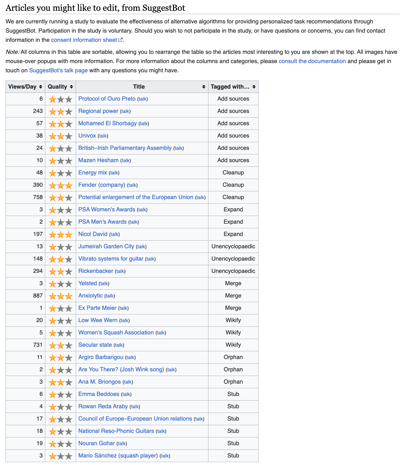 Peer production platforms like Wikipedia commonly suffer from content gaps. Prior research suggests recommender systems can help solve this problem, by guiding editors towards underrepresented topics. However, it remains unclear whether this approach would result in less relevant recommendations, leading to reduced overall engagement with recommended items. To answer this question, we first conducted offline analyses (Study 1) on SuggestBot, a task-routing recommender system for Wikipedia, then did a three-month controlled experiment (Study 2). Our results show that presenting users with articles from underrepresented topics increased the proportion of work done on those articles without significantly reducing overall recommendation uptake. We discuss the implications of our results, including how ignoring the article discovery process can artificially narrow recommendations. We draw parallels between this phenomenon and the common issue of "filter bubbles" to show how any platform that employs recommender systems is susceptible to it.