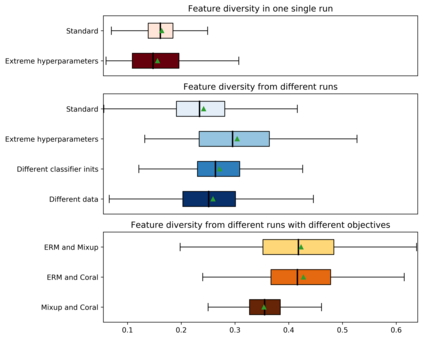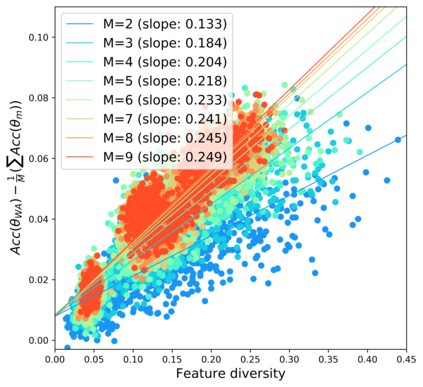 翻译:标准神经网络在分布变化中难以普及。 对于计算机视野的分布性一般化, 最佳的当前方法在培训运行过程中平均加权数。 在本文中, 我们提议“ 不同体重变化( DIWA) ”, 简单改变这一战略: DIWA 平均从数个独立培训运行中获得的加权数, 而不是一次运行。 也许令人惊讶的是, 平均这些加权数在软约束下表现良好, 尽管网络没有线性。 DIWA 背后的主要动机是增加平均模型的功能多样性。 事实上, 不同运行中获得的模型比单运行中收集的模型要多样化得多, 因为超参数和培训程序的差异。 我们通过新的偏差差异- 差异- 差异- 差异- 本地化来激励多样性的需要, 利用 DIWA 和标准功能组合之间的相似性。 此外, 这一分解突出显示, 当差异性术语在测试时会成功, 我们所显示的是当边际分布变化时, 。 实验性地, DWA 持续改善竞争性的DOB 基准的艺术状况。