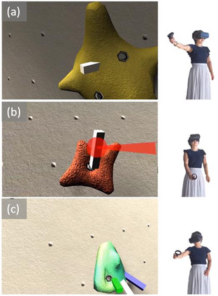 翻译:虚拟(VR)应用程序通常要求用户在执行任务和与虚拟环境中的物体互动时用两只手执行行动。虽然 VR的双体互动可以类似于真实世界互动,从而增加现实主义,改善沉浸状态,但是它们也可以对行动能力有限的人,例如只充分利用一只手的人,提出重大的无障碍挑战。有机会创造无障碍技术,利用用户的能力,但设计师目前缺乏结构化工具来考虑替代方法。为了填补这一空白,我们提议一个设计空间“二对一”,即一个设计空间,便利在VR中从单体输入创建无障碍的双体互动方法。我们的设计空间包括两个层面,即双体互动和计算机协助,我们提供详细研究问题,以便在创建新的单体输入技术,用于VR的双体互动图时加以考虑。我们利用我们的设计空间创造了三种互动技术,我们随后通过与17个流动性有限的人进行视频启发研究来应用这些互动和接收用户反馈。我们的调查结果探索了与自主和机能相结合的复杂交易,并强调了与人进入更多环境和手势的必要性。