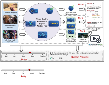 Video quality assessment (VQA) is a fundamental computer vision task that aims to predict the perceptual quality of a given video in alignment with human judgments. Existing performant VQA models trained with direct score supervision suffer from (1) poor generalization across diverse content and tasks, ranging from user-generated content (UGC), short-form videos, to AI-generated content (AIGC), (2) limited interpretability, and (3) lack of extensibility to novel use cases or content types. We propose Q-Router, an agentic framework for universal VQA with a multi-tier model routing system. Q-Router integrates a diverse set of expert models and employs vision--language models (VLMs) as real-time routers that dynamically reason and then ensemble the most appropriate experts conditioned on the input video semantics. We build a multi-tiered routing system based on the computing budget, with the heaviest tier involving a specific spatiotemporal artifacts localization for interpretability. This agentic design enables Q-Router to combine the complementary strengths of specialized experts, achieving both flexibility and robustness in delivering consistent performance across heterogeneous video sources and tasks. Extensive experiments demonstrate that Q-Router matches or surpasses state-of-the-art VQA models on a variety of benchmarks, while substantially improving generalization and interpretability. Moreover, Q-Router excels on the quality-based question answering benchmark, Q-Bench-Video, highlighting its promise as a foundation for next-generation VQA systems. Finally, we show that Q-Router capably localizes spatiotemporal artifacts, showing potential as a reward function for post-training video generation models.