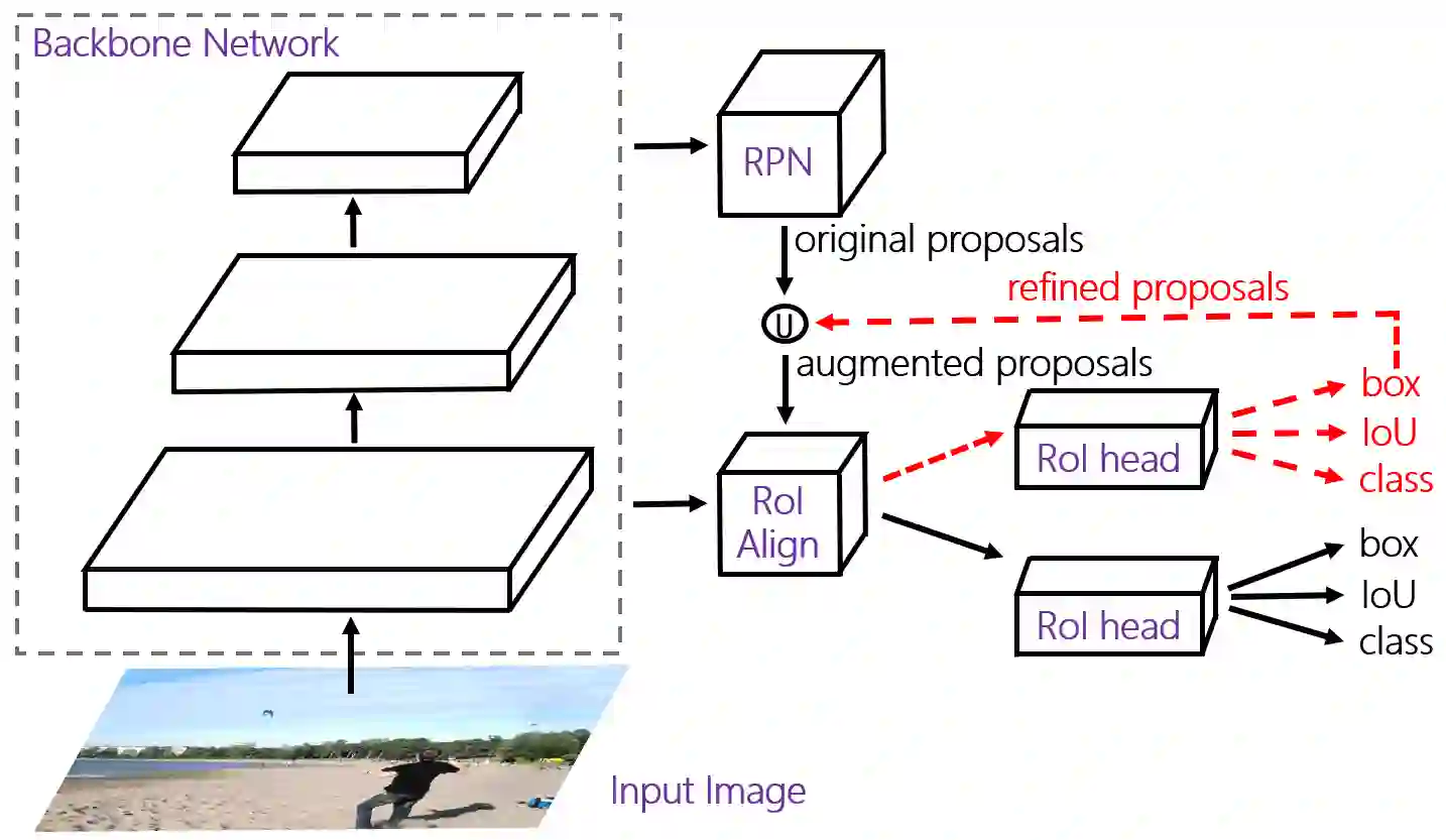 翻译:对于RoI箱头,由于缺少足够高质量的建议,长期阻碍两阶段和多阶段物体探测器,以往的许多工作都试图通过改进RPN的性能或从地面真相中人工生成建议来解决这个问题。然而,这些方法要么需要大量的培训和推断费用,要么几乎没有什么改进。在本文件中,我们设计了名为APDI的新颖的培训方法,这意味着探测器本身会增加建议,并能够产生更高质量的建议。此外,APDI使得有可能将IOU头纳入RoI箱头。它并没有增加任何有利于未来研究和下游任务的任何超参数。COCO数据集的广泛实验表明,我们的方法至少可以带来2.7个AP改进速度更快的R-CNN和各种主干网,而APDI可以与先进的RPN,例如GA-RPN和Cascade RPN合作,以获得额外收益。此外,它给Cascade R-CNN带来重大改进。