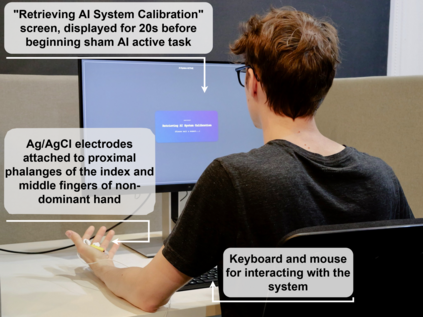 Heightened AI expectations facilitate performance in human-AI interactions through placebo effects. While lowering expectations to control for placebo effects is advisable, overly negative expectations could induce nocebo effects. In a letter discrimination task, we informed participants that an AI would either increase or decrease their performance by adapting the interface, but in reality, no AI was present in any condition. A Bayesian analysis showed that participants had high expectations and performed descriptively better irrespective of the AI description when a sham-AI was present. Using cognitive modeling, we could trace this advantage back to participants gathering more information. A replication study verified that negative AI descriptions do not alter expectations, suggesting that performance expectations with AI are biased and robust to negative verbal descriptions. We discuss the impact of user expectations on AI interactions and evaluation and provide a behavioral placebo marker for human-AI interaction