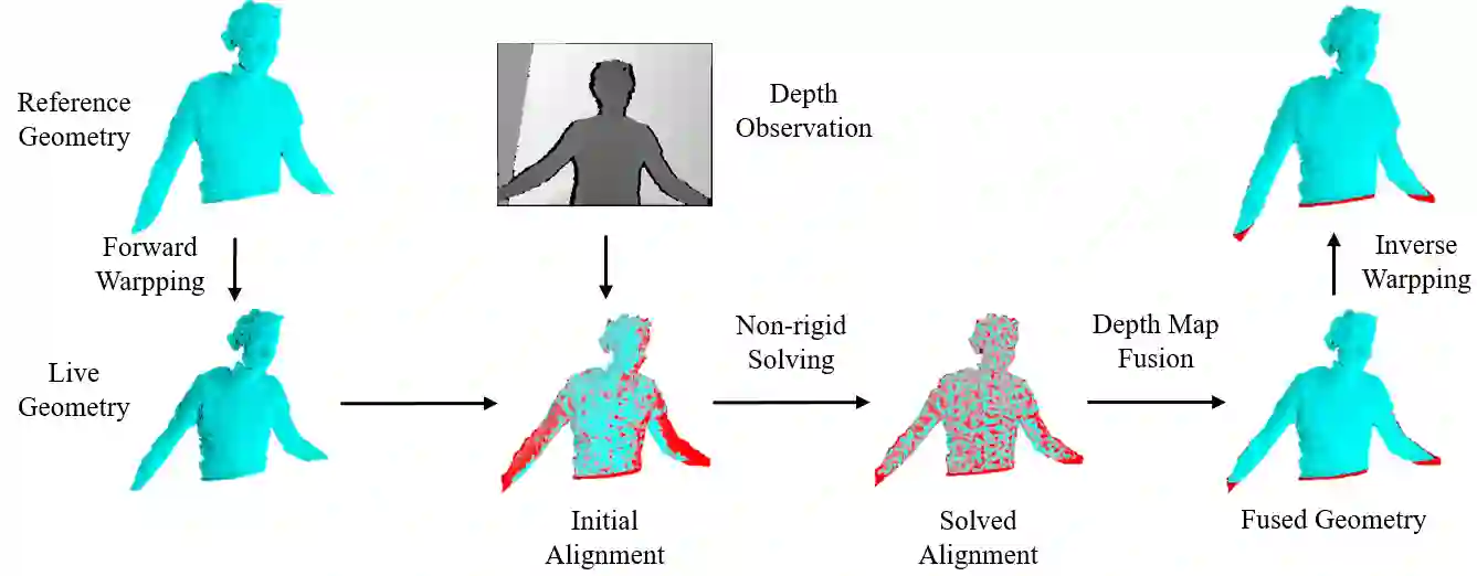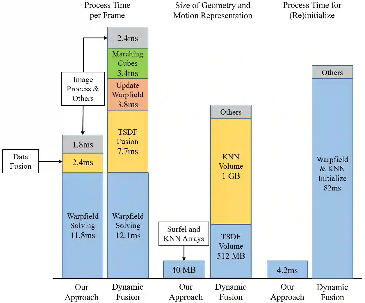 翻译:我们贡献的是一个密集的SLAM系统,它以实时的深度图像流为输入,并实时地重建非硬化变形场,没有模板或先前的模型。与现有的方法不同,我们不维持任何体积数据结构,例如短短的签名远程功能场或变形场,它们是性能和记忆密集的。我们的系统使用一个基于平点(表面)的几何表示法,该表示法可以直接从商品深度传感器获得。标准图形管道和通用GPU(GPPU)计算法用于所有中央操作:即最近的近邻维护、非硬化变形场估计和深度测量的聚合。我们的输油管本身避免了昂贵的体积操作,如立方体进化、体振动和密集的变形场更新,导致性能的大幅改进。此外,基于表面测量法的清晰灵活的几何表示法能够有效地处理地形变化和跟踪失败,从而使我们的重建与最新的深度观测相一致。我们的系统允许机器人与非硬化的物体保持场景描述,从而有可能与动态工作环境相互作用。