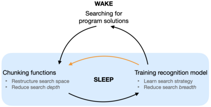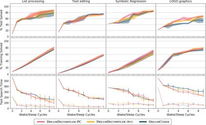 Solving program induction problems requires searching through an enormous space of possibilities. DreamCoder is an inductive program synthesis system that, whilst solving problems, learns to simplify search in an iterative wake-sleep procedure. The cost of search is amortised by training a neural search policy, reducing search breadth and effectively "compiling" useful information to compose program solutions across tasks. Additionally, a library of program components is learnt to express discovered solutions in fewer components, reducing search depth. In DreamCoder, the neural search policy has only an indirect effect on the library learnt through the program solutions it helps discover. We present an approach for library learning that directly leverages the neural search policy, effectively "decompiling" its amortised knowledge to extract relevant program components. This provides stronger amortised inference: the amortised knowledge learnt to reduce search breadth is now also used to reduce search depth. We integrate our approach with DreamCoder and demonstrate faster domain proficiency with improved generalisation on a range of domains, particularly when fewer example solutions are available.