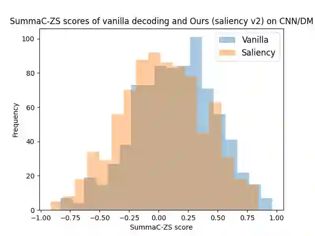 Advancement in large pretrained language models has significantly improved their performance for conditional language generation tasks including summarization albeit with hallucinations. To reduce hallucinations, conventional methods proposed improving beam search or using a fact checker as a postprocessing step. In this paper, we investigate the use of the Natural Language Inference (NLI) entailment metric to detect and prevent hallucinations in summary generation. We propose an NLI-assisted beam re-ranking mechanism by computing entailment probability scores between the input context and summarization model-generated beams during saliency-enhanced greedy decoding. Moreover, a diversity metric is introduced to compare its effectiveness against vanilla beam search. Our proposed algorithm significantly outperforms vanilla beam decoding on XSum and CNN/DM datasets.