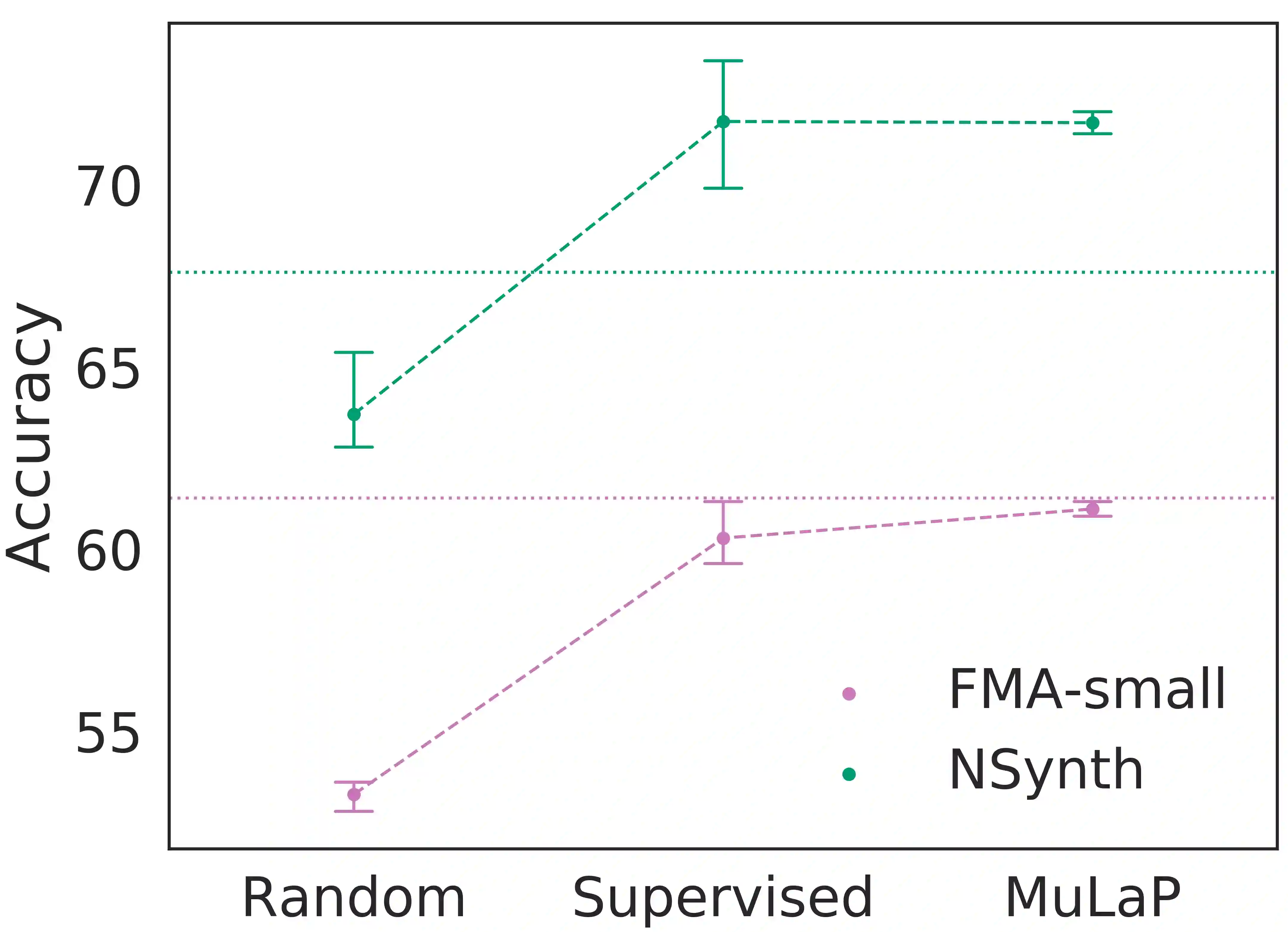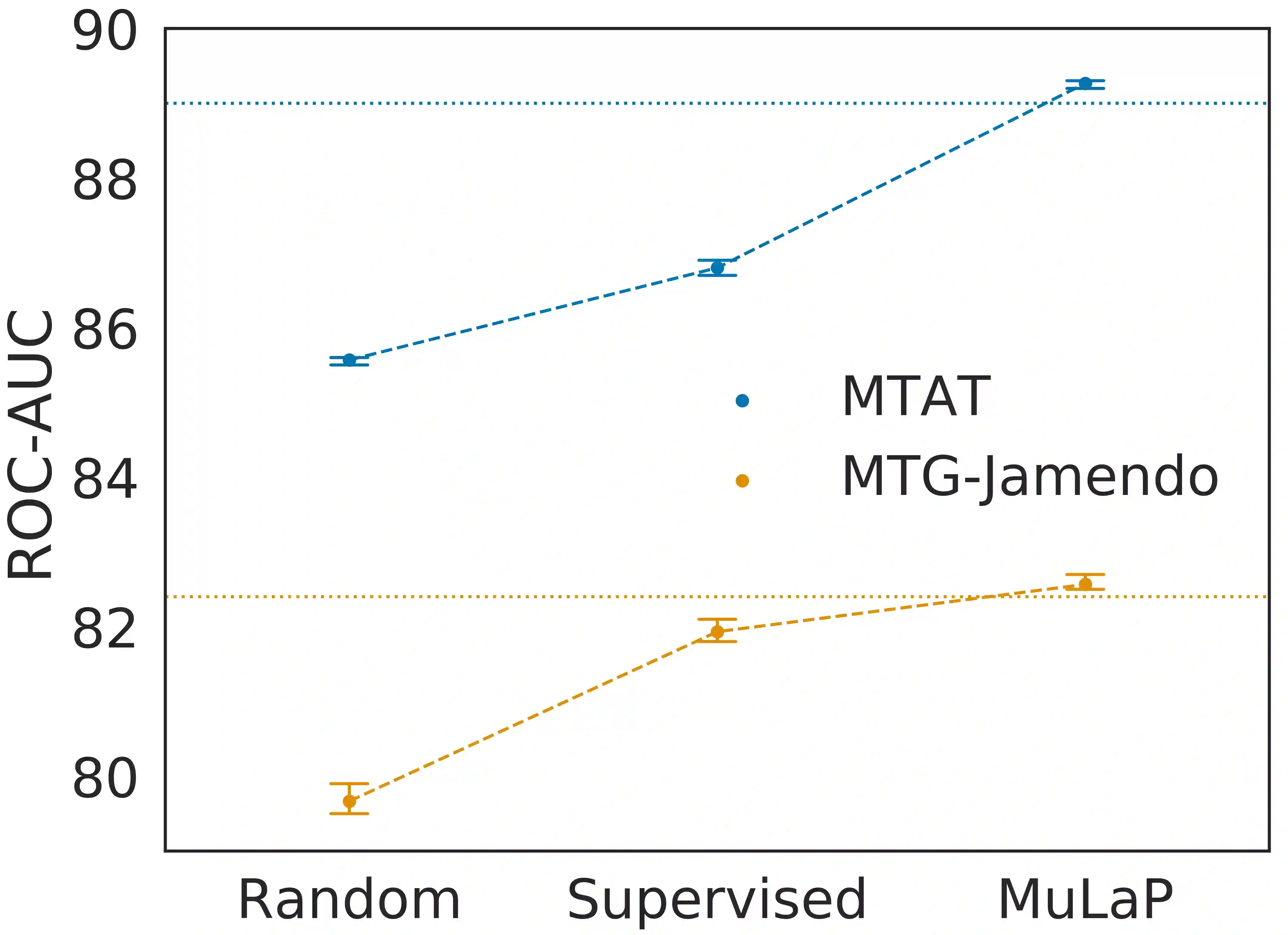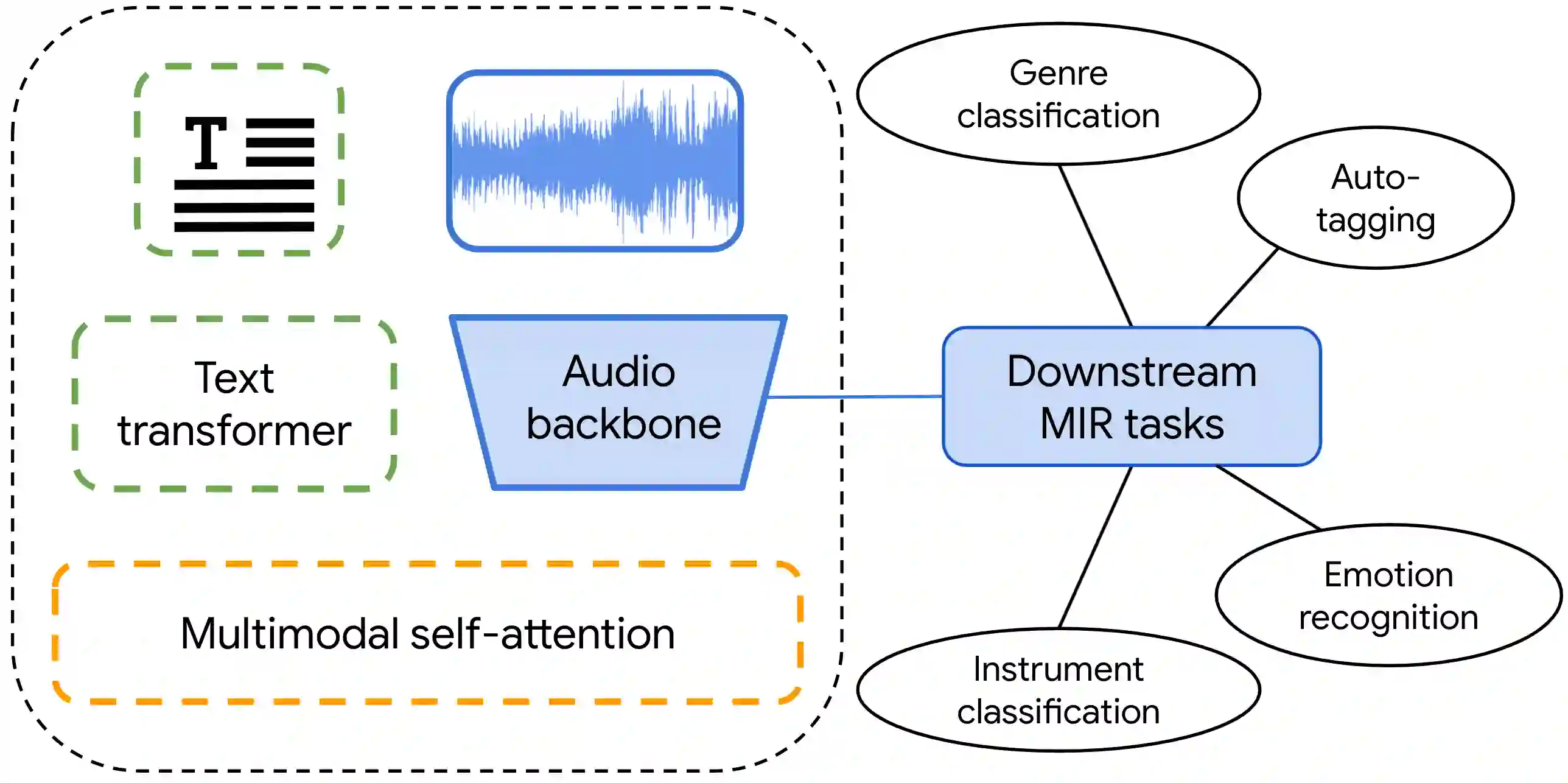 翻译:在这项工作中,我们提出了一个问题,即是否有可能利用不一致的文字作为学习一般用途音乐音频演示的唯一监督信号。为了解决这一问题,我们设计了一个通过一套代理任务优化的音乐和语言预培训(MuLaP)的多式联运结构。虽然这种制度在产生最新成果方面是有效的,但在模型可以具有和需要大量附加说明的数据集的应用范围方面缺乏灵活性。在这项工作中,我们提出了一个问题,即是否有可能利用不一致的文字作为学习一般用途音乐音频演示的唯一监督信号。为了解决这一问题,我们设计了一个通过一套代理任务优化的音乐和语言预培训(MuLaP)的多式联运结构。微弱的监管是以传达轨道整体音乐内容的噪音自然语言描述形式提供的。在培训前,我们将模型的音力支柱转移到一套音乐音频分类和回归任务。我们通过将同一音频主干制作的音频演示的性能与不同的培训战略进行比较,表明我们的预培训方法在所考虑的所有任务和数据集上都始终达到可比或更高的分数。我们的实验还证实,MulaP有效地利用音带对具有竞争力的手法和跨式的文学演示。