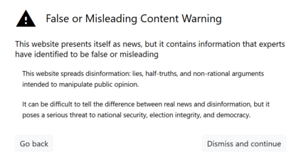 翻译:互联网上的信息正在扩散,平台正在通过对内容附加警告作出反应。然而,几乎没有证据表明,这些警告有助于用户识别或避免虚假信息。在这项工作中,我们调整了信息安全预警文献的方法和结果,以便设计和评价有效的虚假信息警告。在最初的实验室研究中,我们使用模拟搜索任务来检查背景和相互之间的虚假信息警告设计。我们发现用户经常忽略背景警告,但用户通过从其他来源寻求信息而注意到了相互警告和反应。我们随后用8个内部警告设计了一次后续的人群工作者研究。我们确认了对用户寻求信息行为的重大冲击,我们发现预警的设计可以有效地告知用户或传递伤害风险。但我们也发现,用户既不能理解,也不能害怕伤害调节的行为效应。我们的工作提供了证据,说明在设计设计良好的帮助用户用户识别和避免错误信息时,不知情警告可以发现和避免错误信息。我们展示了设计有效警告的前进道路,我们为评估行为效果提供了可重复的方法。我们还确认了对用户寻求信息的行为效果有重要影响的方法。我们还发现,我们暴露了一种可能使用户陷入困境:不知情的警告可能会导致不知情的行为风险。