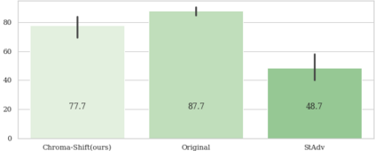 翻译:深神经网络被证明易受各种对抗性扰动的影响。除了广泛研究的添加性噪音扰动外,还可以通过在输入图像上应用每个像素空间漂移来创建对抗性实例。空间转换的对抗性实例对于人类观察者来说,由于缺乏添加性噪音而显得更自然,但它们仍然具有空间变异造成的明显扭曲。由于人类的视觉比色化频道的光谱变异更为敏感,而色化频道是丢失视觉多媒体压缩标准的主要理念之一,因此我们提议以空间变异为基础,仅通过修改输入图像的颜色组成部分来创建对抗性实例。在CIFAR-10和 NIPS-2017 Aversarial学习挑战数据集中具有竞争性的愚弄率的同时,与拟议方法生成的示例相比,在各种感知性质量计量方面得分更好。人类视觉感知研究证实,这些示例比较自然,而且往往无法与原始对立。