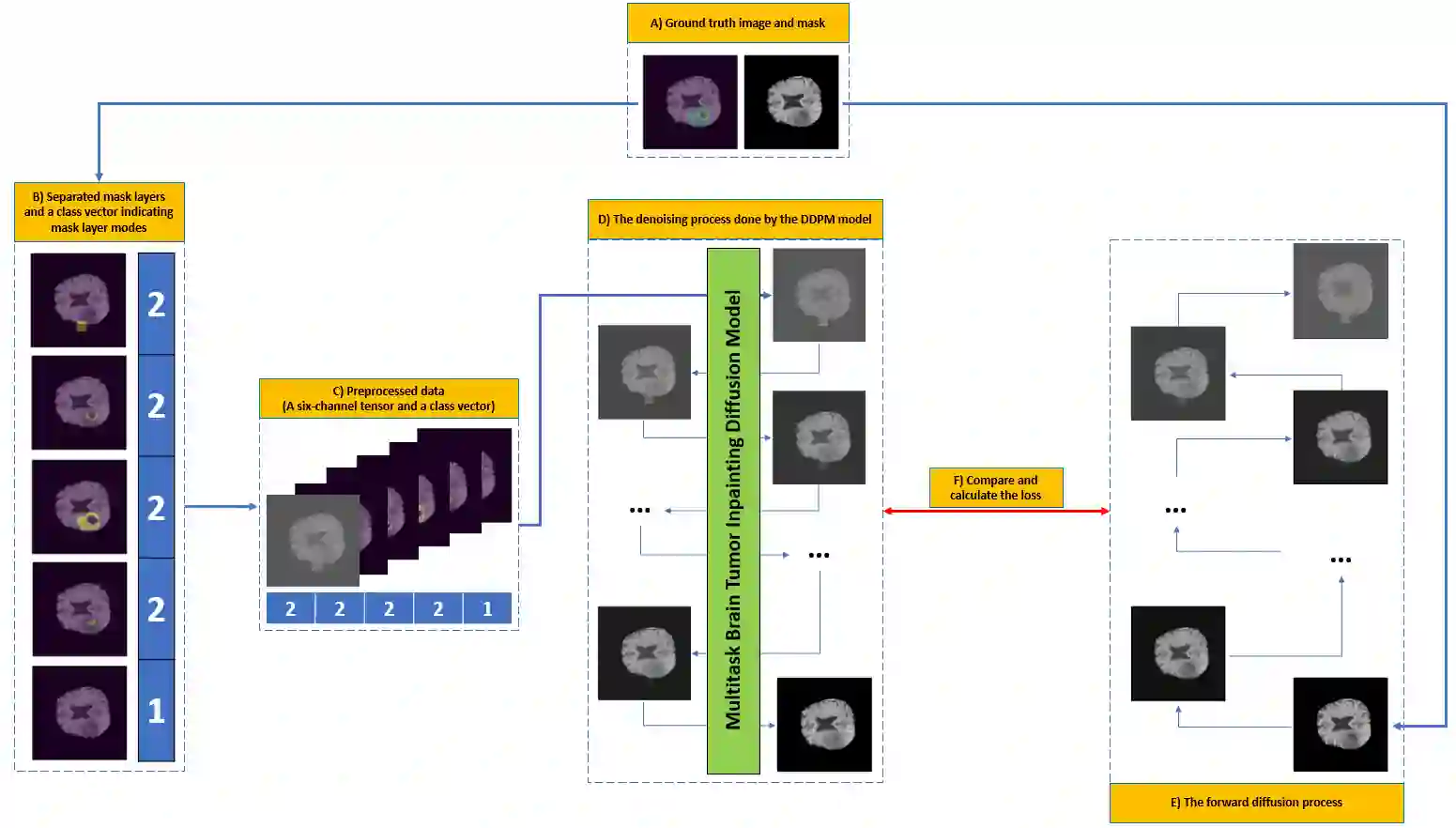 翻译:尽管人们日益关注在医学成像中应用深度学习(DL)模型,但医疗数据集的典型稀缺和不平衡性会严重影响DL模型的性能。生成可以自由分享而不损害患者隐私的合成数据是解决这些困难的众所周知的方法。 绘制算法是DL基因化模型的子集,可以改变输入图像的一个或多个区域,同时使其周围环境相匹配,但在某些情况下,无法映射输入条件也越来越明显。虽然医疗成像数据的大多数油漆技术都使用基因对抗网络(GANs),但这些算法的性能往往不理想,因为它们的产出种类有限,这一问题对于GANs来说已经是众所周知的。 Denologis 扩散稳定模型(DMPMs)是最近引入的基因化网络组合,可以产生与GANs相近的质量,但具有多种产出。我们描述DDPMM对2D脑轴切片使用基因对抗网络(GANs)执行多重油漆任务,但这些算法的性往往不理想,因为其产出种类有限,因此这些算法往往不尽人皆知。