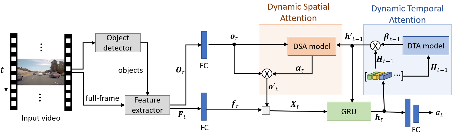 翻译:最近,自治车辆和配备高级司机协助系统(ADAS)的车辆正在出现,它们与由人类驾驶员完全经营的正常车辆共用道路。为确保乘客和其他道路使用者的安全,自主车辆和ADAS必须从自然驾驶场预测交通事故。交通代理的动态空间-时空互动十分复杂,预测未来事故的视觉提示深深嵌入了破摄像机视频数据中。因此,对交通事故的早期预测仍是一项挑战。为此,本文件展示了一个动态空间时空关注网络,以便从破摄像头视频中及早预测交通事故。拟议的DSTA网络学会从一个名为动态时钟注意(DTA)的模块中选择一段有区别的视频时间段来预测交通事故。还学习了以另一个名为动态空间注意(DSA)的模块来提供信息的空间区域。 事故的空间-时空关系特征以及场景特征,与Greded 常规股(GRU)网络一起学习。对DSTA网络在两个数据库的早期预测性能表现进行实验性评估,这两份数据库的预估性业绩评估都超过了DRISTA的预估。