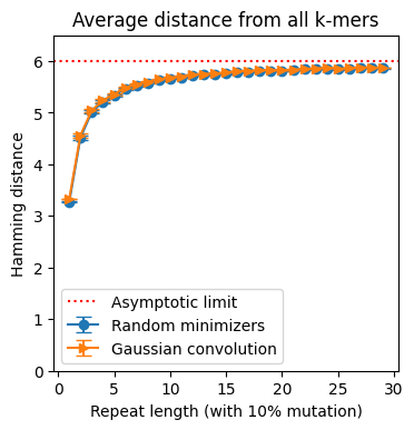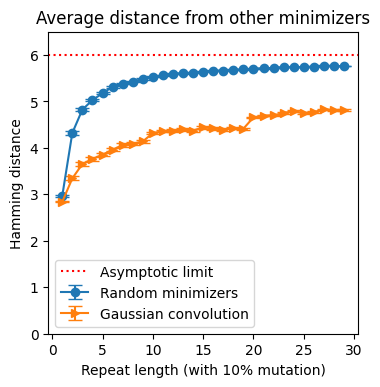 Minimizers and convolutional neural networks (CNNs) are two quite distinct popular techniques that have both been employed to analyze categorical biological sequences. At face value, the methods seem entirely dissimilar. Minimizers use min-wise hashing on a rolling window to extract a single important k-mer feature per window. CNNs start with a wide array of randomly initialized convolutional filters, paired with a pooling operation, and then multiple additional neural layers to learn both the filters themselves and how those filters can be used to classify the sequence. In this manuscript, we demonstrate through a careful mathematical analysis of hash function properties that for sequences over a categorical alphabet, random Gaussian initialization of convolutional filters with max-pooling is equivalent to choosing a minimizer ordering such that selected k-mers are (in Hamming distance) far from the k-mers within the sequence but close to other minimizers. In empirical experiments, we find that this property manifests as decreased density in repetitive regions, both in simulation and on real human telomeres. This provides a partial explanation for the effectiveness of CNNs in categorical sequence analysis.