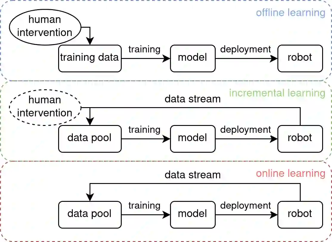翻译:未来,服务机器人可以在没有人类干预的情况下长期自主运行。随着硬件和软件等机器人的开发,许多为实现这一目标而努力的工作已经出现。今天,我们认为,长期机器人自主的一个重要基础是机器人在现场和现场学习的能力,特别是当机器人被部署在不断变化的环境中或需要穿越不同的环境时。本文从机器人学习的角度,特别是在线学习的角度,审视长期自主的问题,并结合其“数据”和随后的“部署”的前提,讨论其“数据”和“部署”问题。