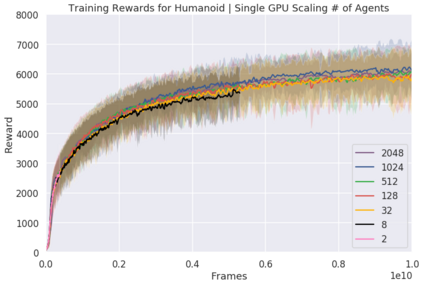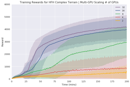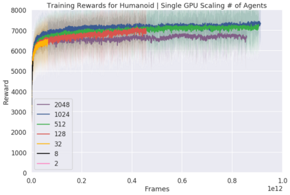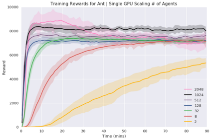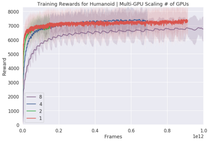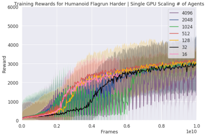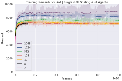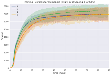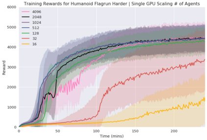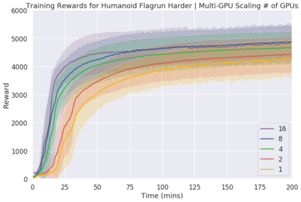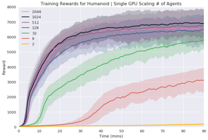 翻译:大部分深强化学习(Deep RL)算法要求大量培训样本,用于学习复杂任务。许多关于加快深RL的近期工作侧重于分布式培训和模拟。虽然分布式培训通常是在GPU上完成的,但模拟不是。在这项工作中,我们提议使用GPU加速的RL模拟作为CPU的替代。我们用基于GPU的物理引擎NVIDIA Flex,展示了学习各种连续控制、移动任务的有希望的加速。用一个 GPU 和 CPU 核心,我们可以在20分钟以内用比以前工作少10-1000x CPU核心来训练人形运行任务。我们还展示了我们的模拟器在多GPU环境中的可扩展性,以训练更具挑战性的移动任务。
