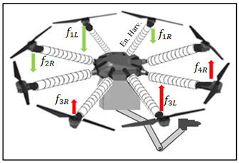 "Smart cities" is the trendy rubric of modern urban projects that require new innovative ideas to attain the desired perfection in many fields to change our life for the better. In this context, a new innovative application will be presented here to investigate and continuously make the required maintenance of public roads by creating a flying robot for painting the partially erased parts of sidewalks' edges that are usually plated in two different colors; primarily black and white as we suppose here. The first contribution of this paper is developing a fuzzy-logic-based stabilization system for an octocopter serving as a liquids transporter that could be equipped with a robot arm. The second contribution consists of designing an embedded energy harvester for the flying robot to promote the management of available power sources. Finally, as suggested in this project, we present a complement heuristic study clarifying some main concepts that rely on a computer vision-based decision-making system.
