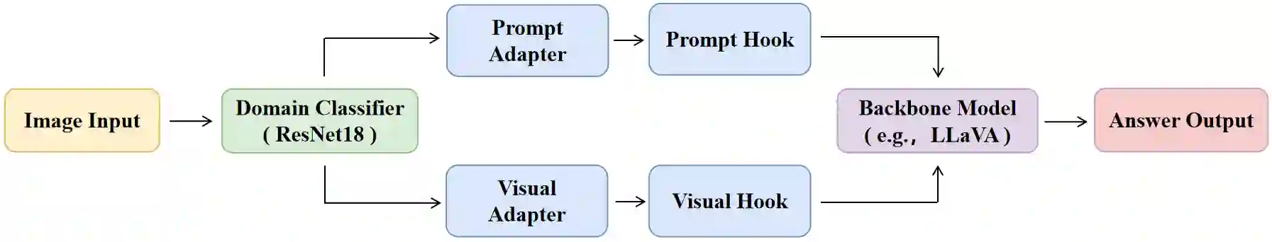 翻译:视觉问答(VQA)领域的最新进展在自然图像域中展示了令人印象深刻的性能,诸如LLaVA等模型利用大型语言模型(LLM)进行开放式推理。然而,当迁移到遥感、医学影像或数学图表等域外场景时,由于显著的分布偏移和缺乏有效的域适应机制,其泛化能力会大幅下降。现有方法通常依赖于针对每个域的微调或定制化流程,这些方法成本高昂、灵活性差,且难以跨不同任务扩展。本文提出CATCH,一种即插即用的跨域适应框架,旨在提升VQA模型的泛化能力,同时对其核心架构仅需最小改动。我们的核心思想是通过引入两个轻量级模块来解耦视觉与语言适应:一个用于识别输入图像类型的域分类器,以及一个包含用于语言调制的提示适配器和用于视觉特征调整的视觉适配器的双重适配机制。这两个模块通过统一的钩子接口动态注入,无需对骨干模型进行重新训练。在四个特定领域的VQA基准测试上的实验结果表明,我们的框架在不重新训练骨干模型的情况下实现了持续的性能提升,包括在MathVQA上提升+2.3 BLEU,在MedVQA-RAD上提升+2.6 VQA分数,在ChartQA上提升+3.1 ROUGE分数。这些结果突显了CATCH为多域VQA提供了一种可扩展且可扩展的方法,使得在不同应用领域的实际部署成为可能。