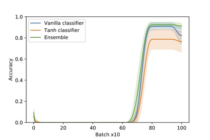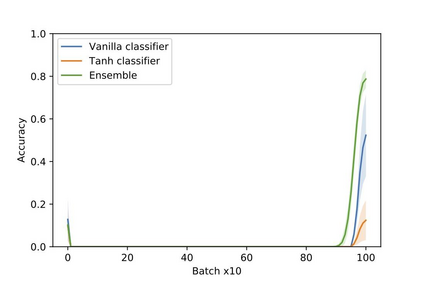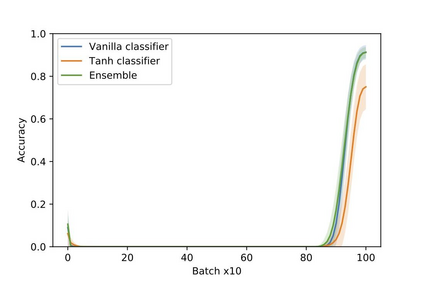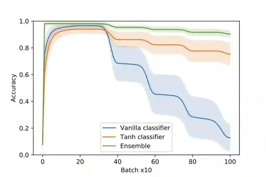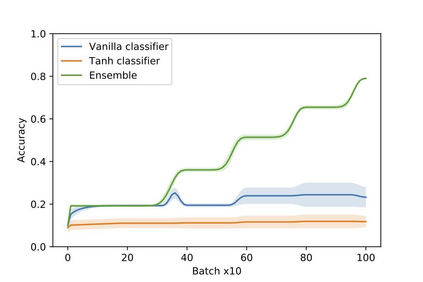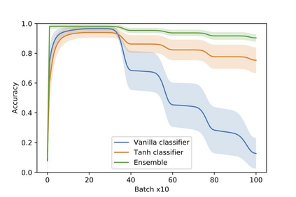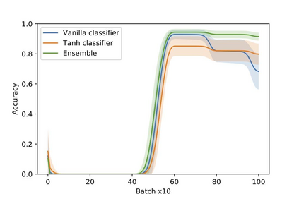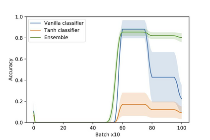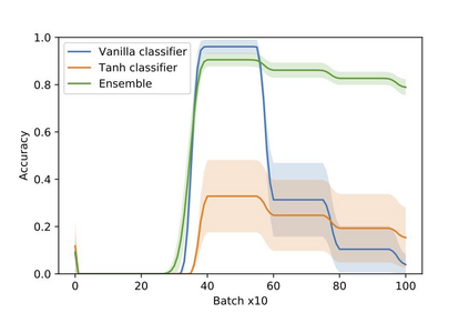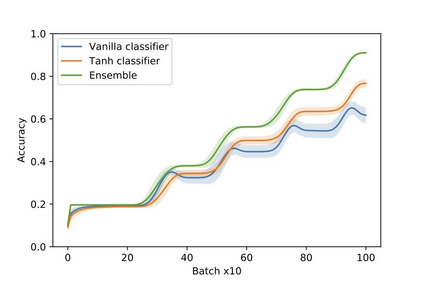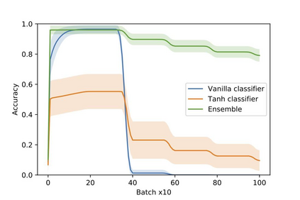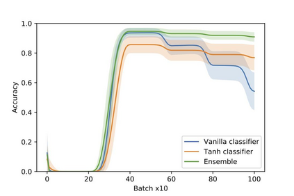翻译:我们展示了一个在特别困难的环境中持续学习的有效架构,在这种环境中任务界限不存在或未知。我们的架构包括一个编码器,在单独的数据集上预先培训,以及一组简单的单层分类器。需要两项主要创新才能使这种组合发挥作用。首先,由于在自我监督的培训方法方面最近取得的进展,提供了适当的通用的、经过培训的预科解码器。第二,将每个分类器与钥匙配对在一起,关键空间与编码器的潜在空间相同,允许它们被集体、但有选择地使用,通过K最接近的邻居的外观来加以使用。我们显示,经过对编码器和组合结构进行训练的模式是使这种组合发挥作用的最先进的。首先,由于在自我监督的培训方法方面最近取得的进展,提供了适当的通用的、经过预先培训的编码解密的编码器。第二,将每个分类器与钥匙配对在一起,使每个分类器与钥匙空间与编码器的潜在空间完全相同,从而允许它们被集体、但又有选择地使用。我们显示,通过 k- 最接近的邻居的外观的外观来加以使用。我们展示的是,在100个层次上进行自由分配时,我们无法持续地展示它的有效性,在这种结构中学习的任务中,在100个阶段里学习任务中,我们无法显示其持续地展示它是如何在100个层次上学习的任务。