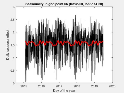 翻译:风能在全世界燃料混合中所占的份额已大为增加。在得出风力预测时,主要成分是风速数据;风力农场越近,对电力供应的预测越好。本文提出了一个在方便地点预测风速的混合模型,然后应用于南加州电价区。我们用时间序列的网格历史预测和实际风速观测来建立随机场。我们用普通的轮廓来估计时间参数的空间变异性并作出预测。这项工作的优势有两个方面:(1) 准确的每日风速预报,以及(2) 适用于其他市场的一般方法。