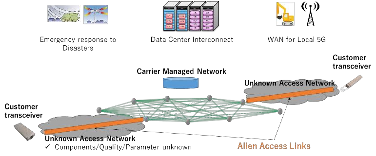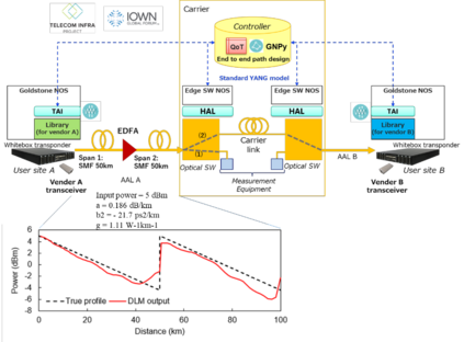 翻译:随着数据中心互联互通(DCI)和当地5G的扩展,越来越需要通过高容量光学连接,在客户地点之间建立动态的连接,然而,信号功率剖面和放大器增益等链接参数往往不为人所知,必须由专家加以测量,以防止因耗费时间的人工测量而提供动态路径。虽然提出了几种估算这种外来接入链接的未知参数的技术,但没有提出任何推动估算技术在客户地点之间建立光学路径的架构和协议。我们的研究的目的是通过外部接入连接自动连接客户拥有的收发器和最佳传输质量(QoT),我们首先提出客户和承运人之间合作光学路径设计的结构和协议,利用最新技术估算链接参数。我们随后在软件定义的网络(SDN)控制器和白箱转发器中采用开放的API执行拟议的协议。实验表明,光学路径是动态地通过从收发器冷机起起的137秒的外来访问链接建立的。我们首先讨论QOT准确性和剩余问题。