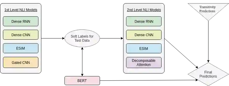 This report describes the entry by the Intelligent Knowledge Management (IKM) Lab in the WSDM 2019 Fake News Classification challenge. We treat the task as natural language inference (NLI). We individually train a number of the strongest NLI models as well as BERT. We ensemble these results and retrain with noisy labels in two stages. We analyze transitivity relations in the train and test sets and determine a set of test cases that can be reliably classified on this basis. The remainder of test cases are classified by our ensemble. Our entry achieves test set accuracy of 88.063% for 3rd place in the competition.