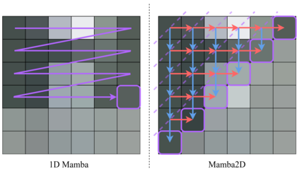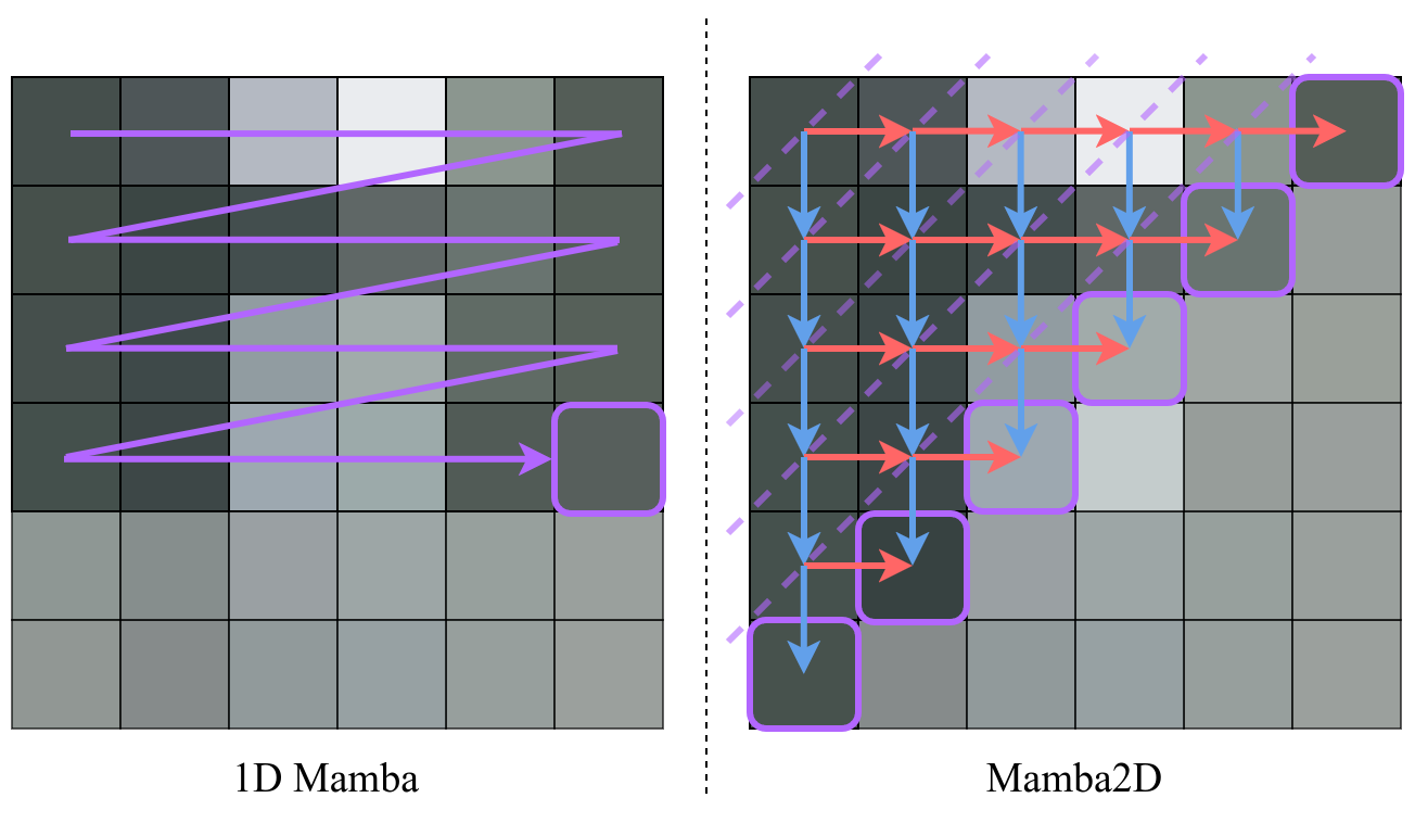 State-Space Models (SSMs) have recently emerged as a powerful and efficient alternative to the long-standing transformer architecture. However, existing SSM conceptualizations retain deeply rooted biases from their roots in natural language processing. This constrains their ability to appropriately model the spatially-dependent characteristics of visual inputs. In this paper, we address these limitations by re-deriving modern selective state-space techniques, starting from a natively multidimensional formulation. Currently, prior works attempt to apply natively 1D SSMs to 2D data (i.e. images) by relying on arbitrary combinations of 1D scan directions to capture spatial dependencies. In contrast, Mamba2D improves upon this with a single 2D scan direction that factors in both dimensions of the input natively, effectively modelling spatial dependencies when constructing hidden states. Mamba2D shows comparable performance to prior adaptations of SSMs for vision tasks, on standard image classification evaluations with the ImageNet-1K dataset.